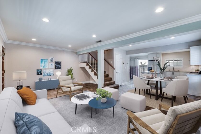 GORGEOUS townhouse that certainly feels like a home in the heart of Sherman Oaks. This home has updates from top to bottom starting with a custom kitchen fit for a chef - the quartzite countertops are the star of the show complimented by the newer cabinets and drawers which several light up when opened, newer Bosch dishwasher, newer built-in microwave/speed oven, stainless steel appliances with a great subway tile backsplash bringing it all together. Just off the kitchen, you have an updated powder room and a great space for a dining area or roomy office/den area with a view of the pool leading you to a patio to enjoy those cool evenings. Downstairs, the luxury vinyl floors flow throughout, with recessed LED lighting and an abundance of natural light. The living room is spacious with tons of room to have both a seating area and living space. Upstairs, you’ll find all bedrooms with vaulted ceilings, full size stackable laundry space, laminate floors, an updated bathroom in the hall with beautiful marble tiled floors and newer vanity. The main bedroom is HUGE, those vaulted ceilings are fantastic, the custom barn door takes you to the updated en-suite spa like bathroom with marble floors, air tub and updated vanity, with custom walk-in closet. Some other features include a newer HVAC, new water heater, dual pane windows with plantation shutters throughout, 2 car shared tandem garage (you can park 2 cars front and back next to the neighbors front and back parked cars- this is just like a parking garage but for only two units) with room for extra storage, low monthly HOA that includes many amenities and utilities such as water, trash and sewer making this the perfect place to call home.