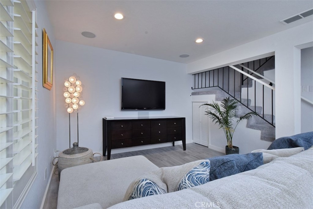 Presenting a spacious and bright 3 bedroom, 2.5 bathroom townhome with an attached garage in the heart of desirable Sherman Oaks! Enter into a large and inviting living room with upgraded plantation shutters and elegant recessed lighting. The open concept kitchen features granite countertops, newer high end stainless steel appliances, gas stove, brand new wine fridge, barstool height countertop, a water filter and countertop beer tap. Adjacent to the kitchen, an additional area works perfectly as a dining room, den or office, and offers direct access to the large outdoor patio, pool and BBQ. The half bath is also conveniently located downstairs. Upstairs features a master suite with en-suite bath, walk-in closet, 2 additional bedrooms, 1 bathroom & stackable, almost new washer/dryer. Other features include a newer AC system, newer floors, dual pane windows and a 2-car tandem garage with ample storage and direct access to the unit. An ideal three bedroom townhome with no one above or below, direct access garage, lower HOA dues and a peaceful, quaint complex!