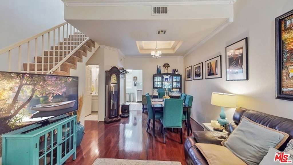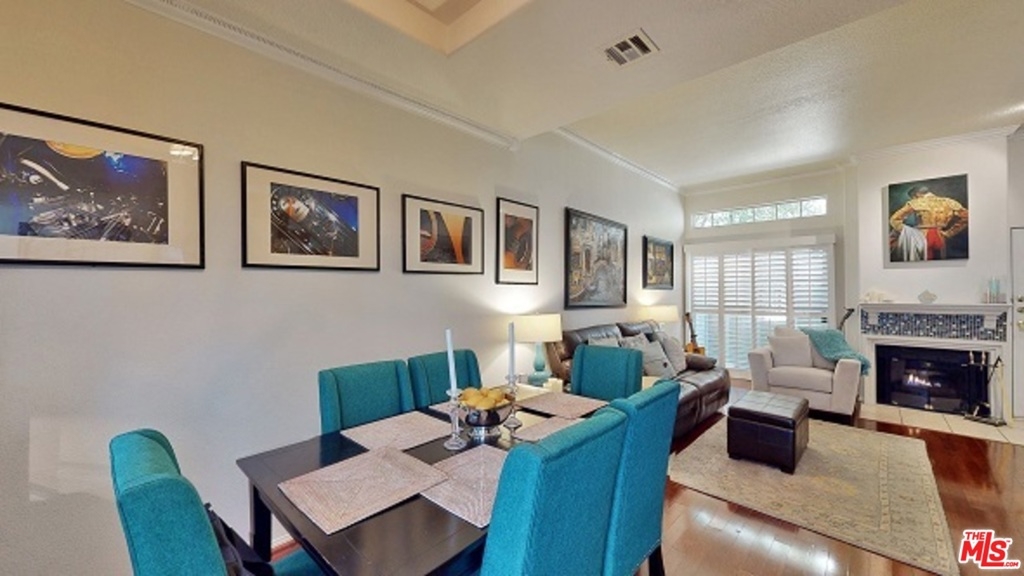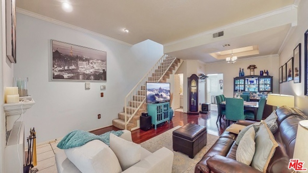 Looking for a cure for the common condo? Welcome home to this stylish, spacious townhouse, updated and meticulously kept! The fussiest buyers will ooh and ahh at all the tasty details: 3 skylights, 2 balconies, 1 romantic fireplace, high ceilings. Lower level features crown molding, plantation shutters, hardwood floors, fireplace, guest bathroom; upper level features 2 large en suite bedrooms with 10 foot ceilings and washer/dryer. Newer HVAC unit syncs to phone app for remote controlling, dual-paned windows in master. Small, 8-unit complex in neighborhood where Studio City becomes Sherman Oaks; seriously affordable HOA dues. Amazing location across from a popular coffee shop and easy distance to dining, entertainment, shopping and parks.