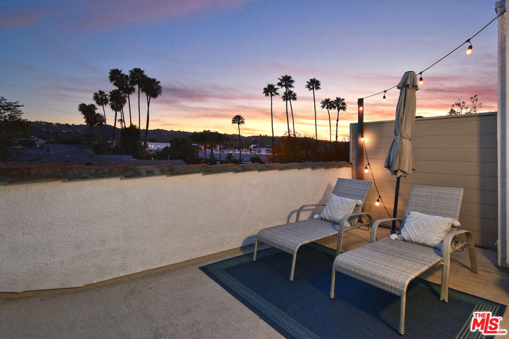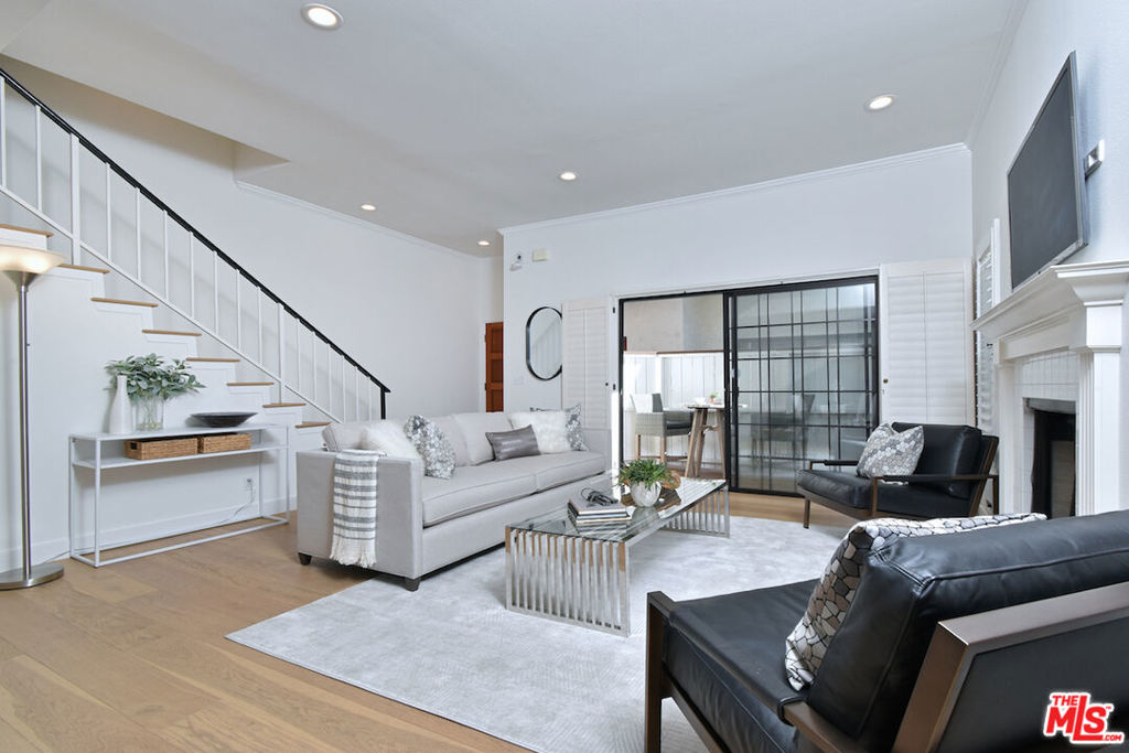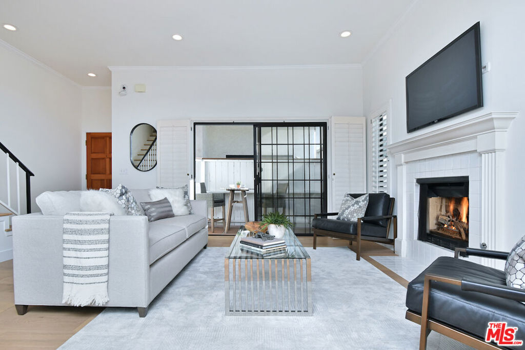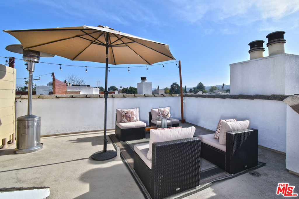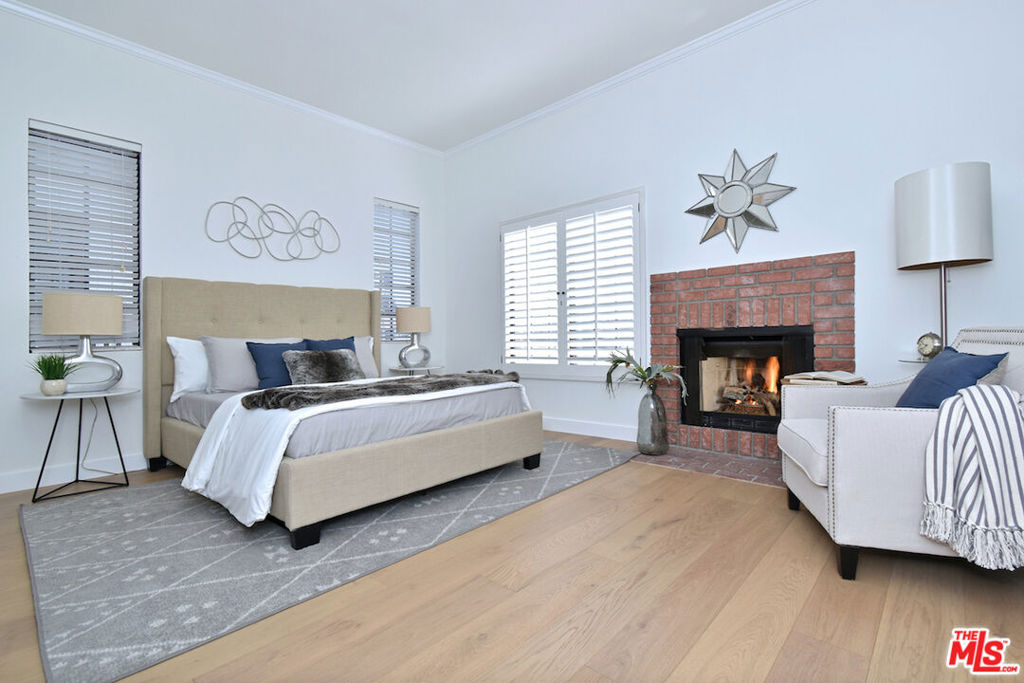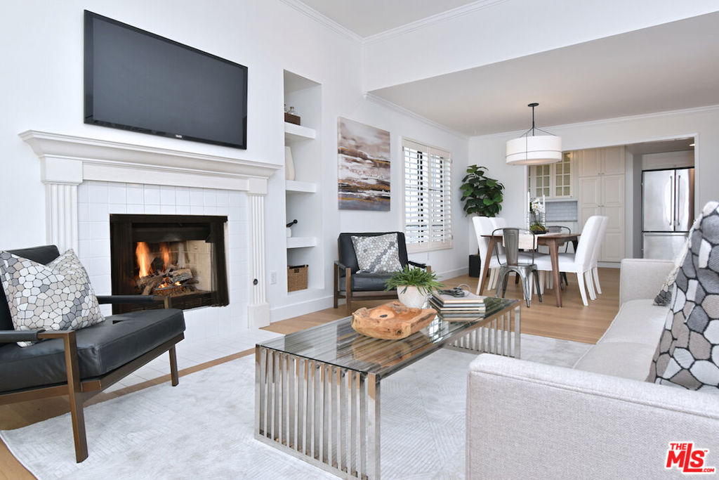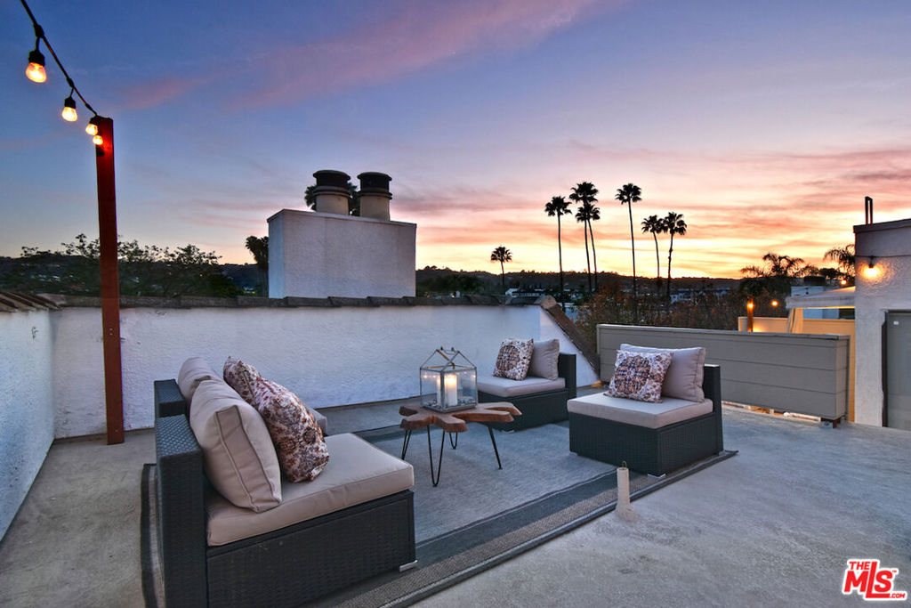 Nestled on a quiet, tree-lined street, this incredible New York style townhouse with a stunning rooftop deck provides incredible access to all that Sherman Oaks has to offer from yoga studios to shopping and great restaurants making it urban living at its best. Inside, a large contemporary living and dining space showcases clean creamy white walls, gorgeous wide plank engineered wood floors, a fireplace w wood mantle, custom lighting, and beautiful picture windows flooding the unit with natural light. Completing the downstairs level is a sweet, remodeled powder bath and an eat-in kitchen with stone counters, subway tile, ample beautiful cabinetry, and stainless appliances. Upstairs, two spacious en suite bedrooms provide good closet space, including the primary retreat with high ceilings, a cozy fireplace, a large walk-in closet, and luxurious spa bath with a shower over tub. On the upper level, there's an enclosed laundry room with storage, and doorway leading out to your very own private rooftop deck with stunning southwest-facing views of the Santa Monica Mountains an amazing space for intimate gatherings. Come check out 14014 Milbank Street #3, you'll love it!
