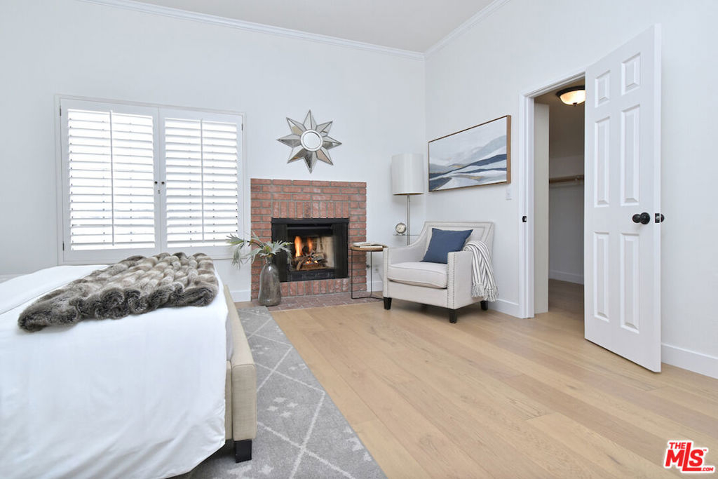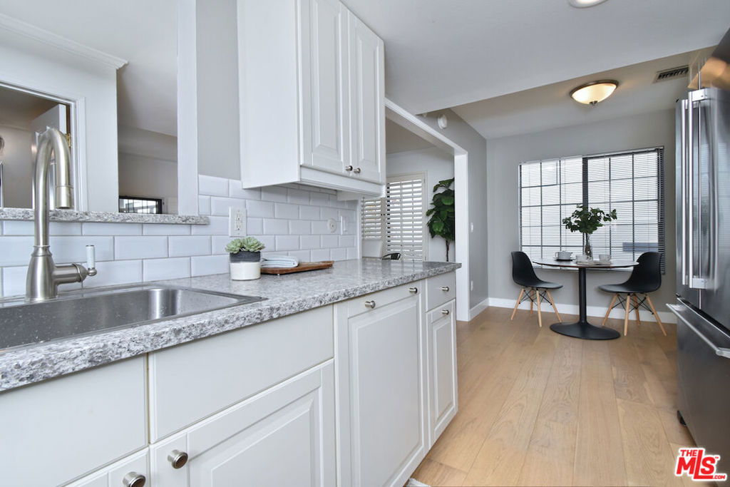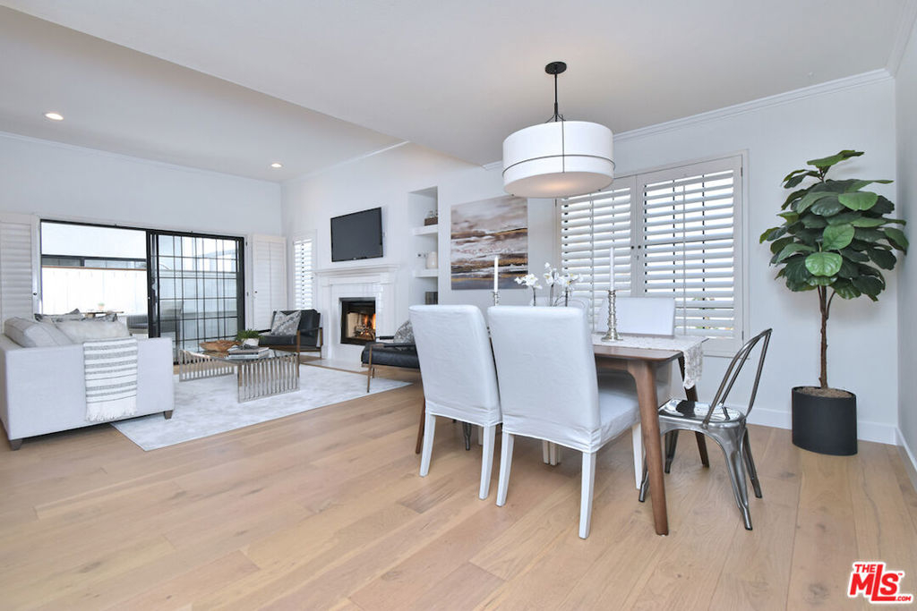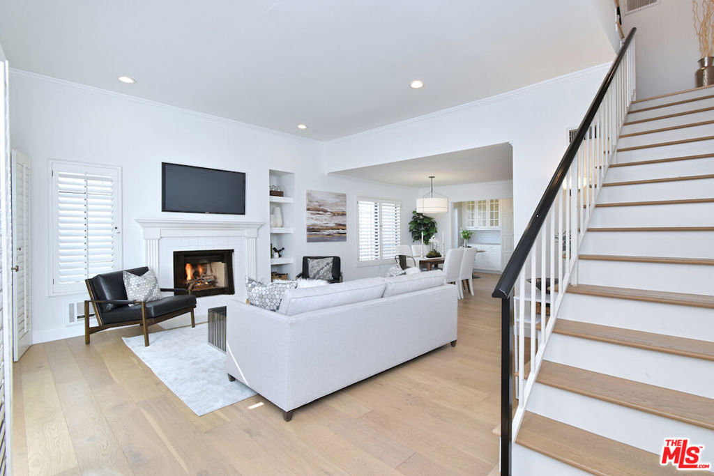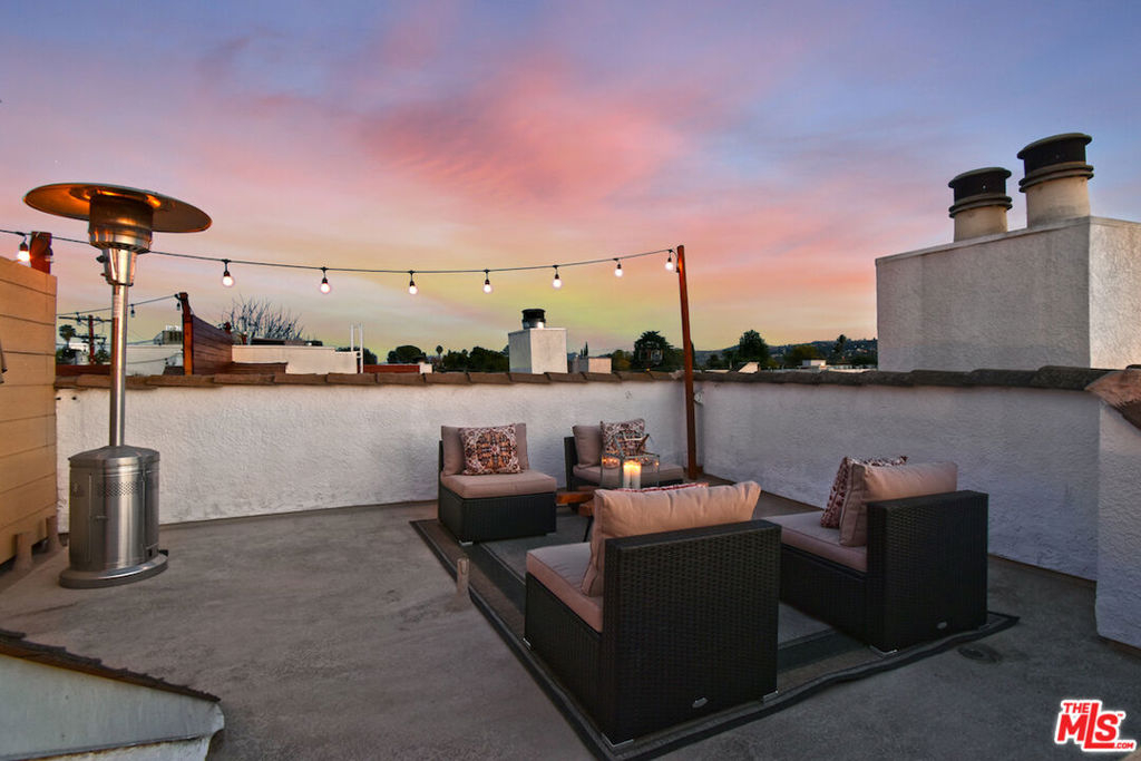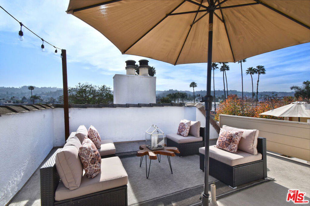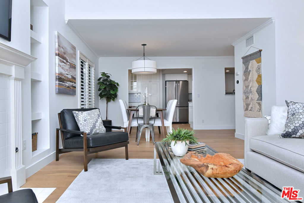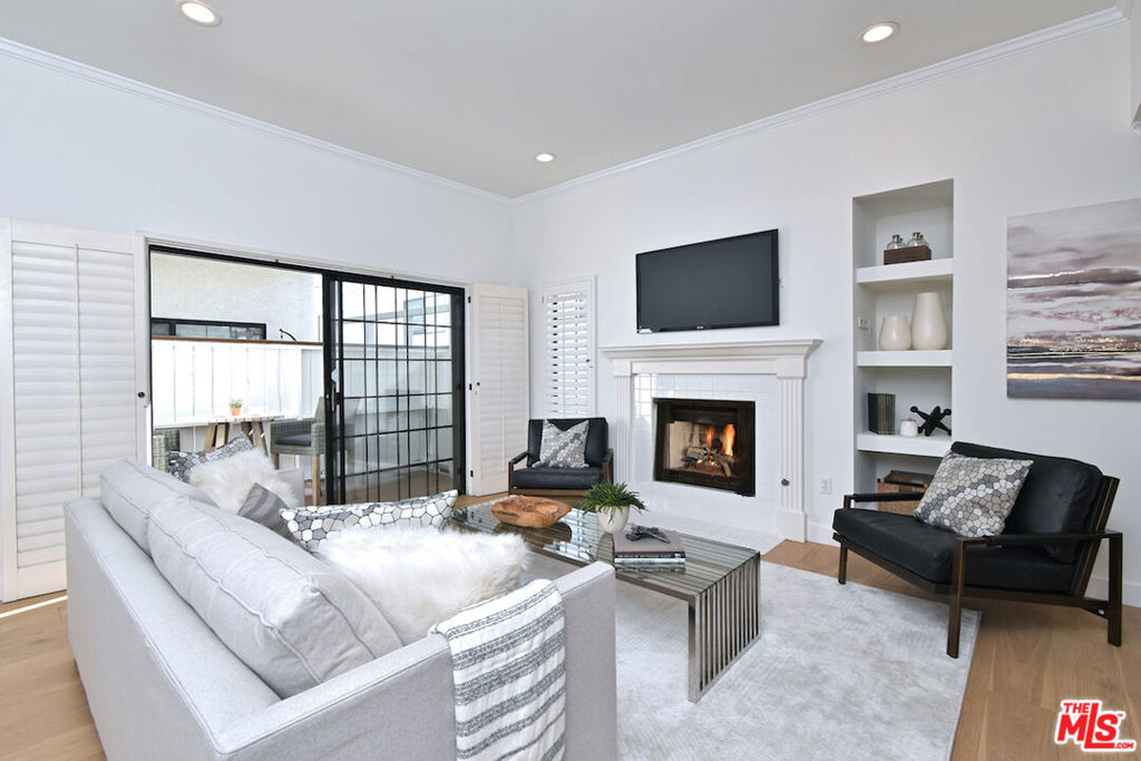Nestled on a quiet, tree-lined street, this incredible New York style townhouse with a stunning rooftop deck provides incredible access to all that Sherman Oaks has to offer from yoga studios to shopping and great restaurants making it urban living at its best. Inside, a large contemporary living and dining space showcases clean creamy white walls, gorgeous wide plank engineered wood floors, a fireplace w wood mantle, custom lighting, and beautiful picture windows flooding the unit with natural light. Completing the downstairs level is a sweet, remodeled powder bath and an eat-in kitchen with stone counters, subway tile, ample beautiful cabinetry, and stainless appliances. Upstairs, two spacious en suite bedrooms provide good closet space, including the primary retreat with high ceilings, a cozy fireplace, a large walk-in closet, and luxurious spa bath with a shower over tub. On the upper level, there's an enclosed laundry room with storage, and doorway leading out to your very own private rooftop deck with stunning southwest-facing views of the Santa Monica Mountains an amazing space for intimate gatherings. Come check out 14014 Milbank Street #3, you'll love it!