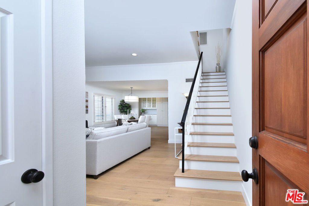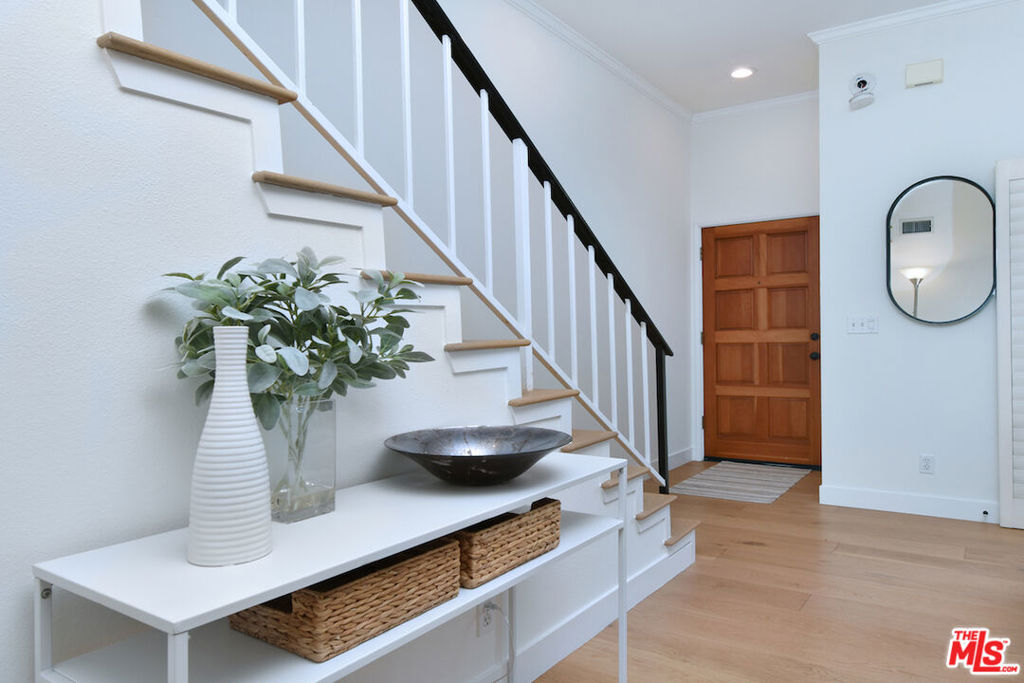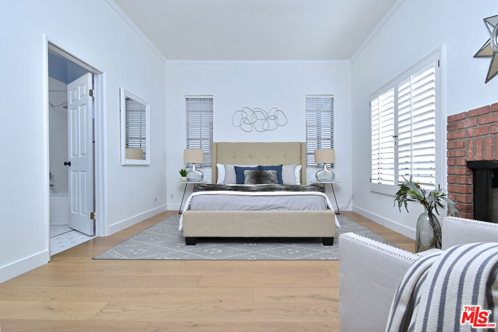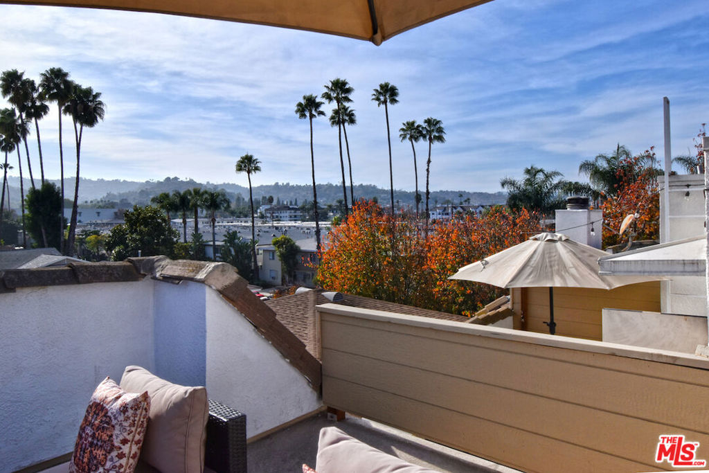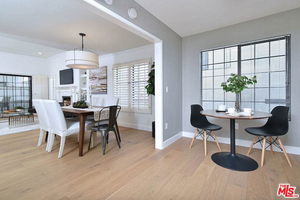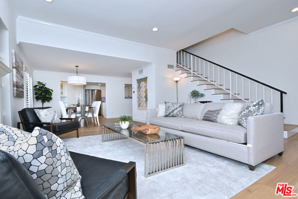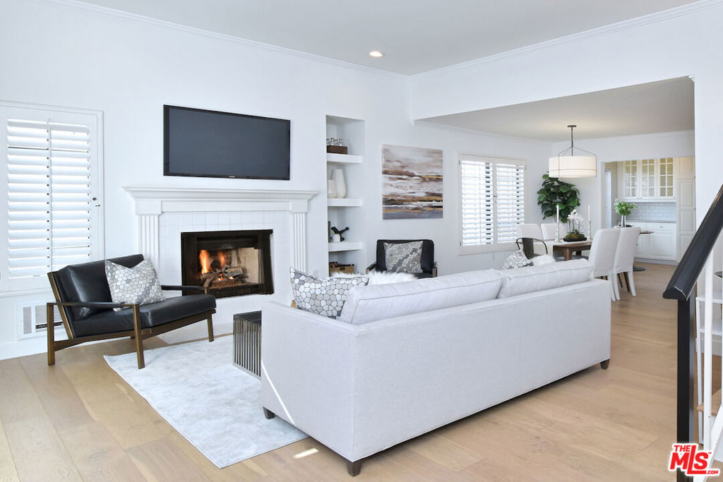 Nestled on a quiet, tree-lined street, this incredible New York style townhouse with a stunning rooftop deck provides incredible access to all that Sherman Oaks has to offer from yoga studios to shopping and great restaurants making it urban living at its best. Inside, a large contemporary living and dining space showcases clean creamy white walls, gorgeous wide plank engineered wood floors, a fireplace w wood mantle, custom lighting, and beautiful picture windows flooding the unit with natural light. Completing the downstairs level is a sweet, remodeled powder bath and an eat-in kitchen with stone counters, subway tile, ample beautiful cabinetry, and stainless appliances. Upstairs, two spacious en suite bedrooms provide good closet space, including the primary retreat with high ceilings, a cozy fireplace, a large walk-in closet, and luxurious spa bath with a shower over tub. On the upper level, there's an enclosed laundry room with storage, and doorway leading out to your very own private rooftop deck with stunning southwest-facing views of the Santa Monica Mountains an amazing space for intimate gatherings. Come check out 14014 Milbank Street #3, you'll love it!
