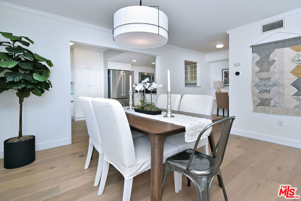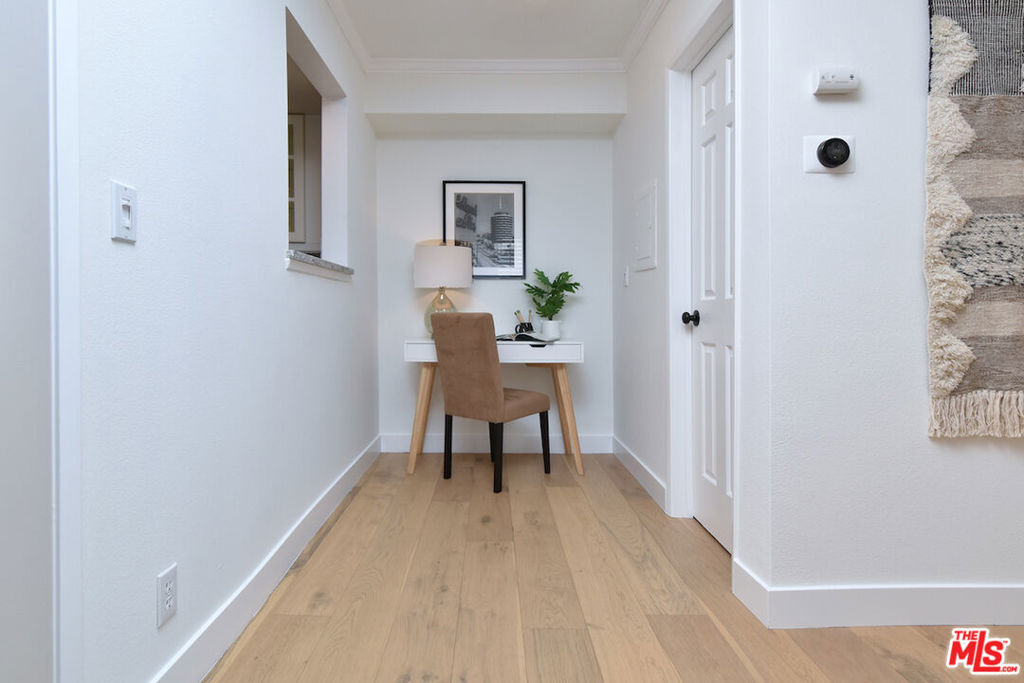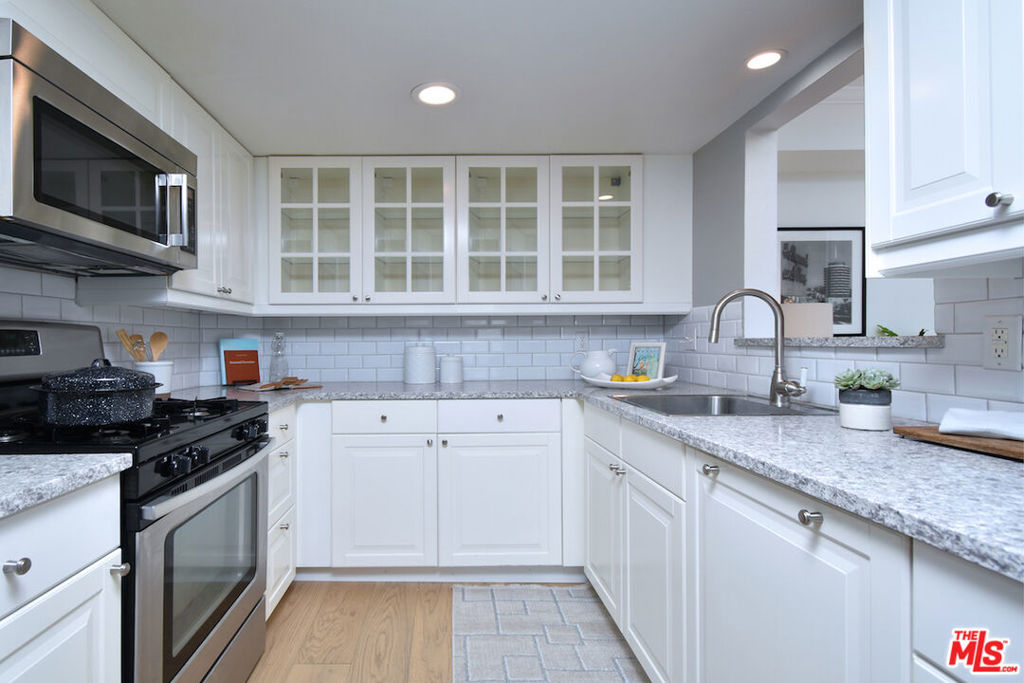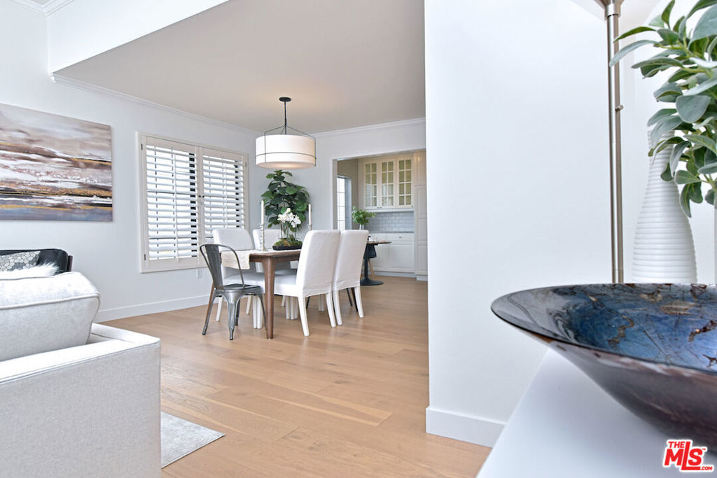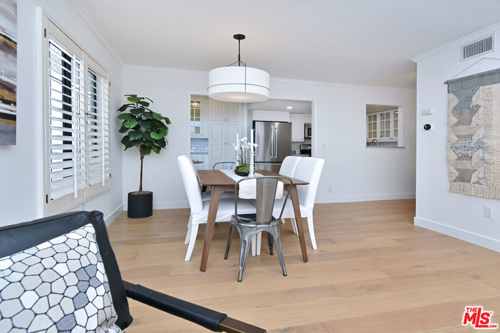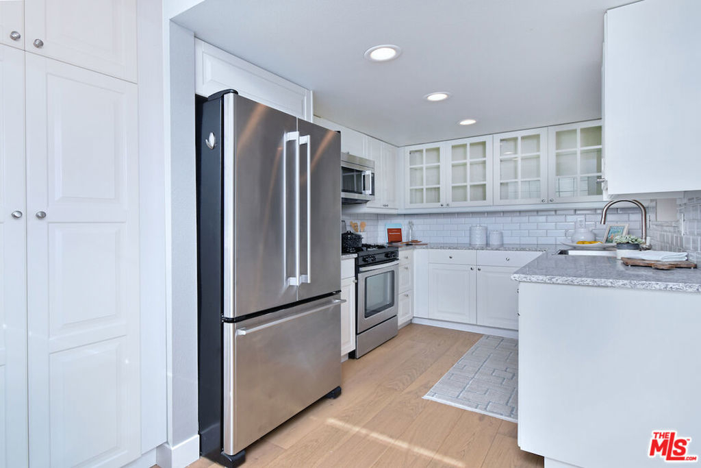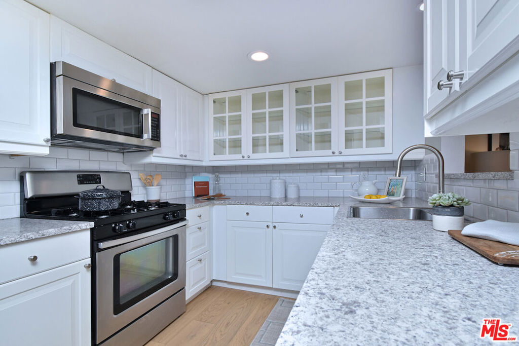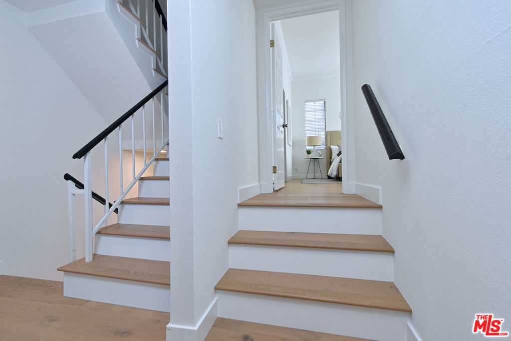 Nestled on a quiet, tree-lined street, this incredible New York style townhouse with a stunning rooftop deck provides incredible access to all that Sherman Oaks has to offer from yoga studios to shopping and great restaurants making it urban living at its best. Inside, a large contemporary living and dining space showcases clean creamy white walls, gorgeous wide plank engineered wood floors, a fireplace w wood mantle, custom lighting, and beautiful picture windows flooding the unit with natural light. Completing the downstairs level is a sweet, remodeled powder bath and an eat-in kitchen with stone counters, subway tile, ample beautiful cabinetry, and stainless appliances. Upstairs, two spacious en suite bedrooms provide good closet space, including the primary retreat with high ceilings, a cozy fireplace, a large walk-in closet, and luxurious spa bath with a shower over tub. On the upper level, there's an enclosed laundry room with storage, and doorway leading out to your very own private rooftop deck with stunning southwest-facing views of the Santa Monica Mountains an amazing space for intimate gatherings. Come check out 14014 Milbank Street #3, you'll love it!