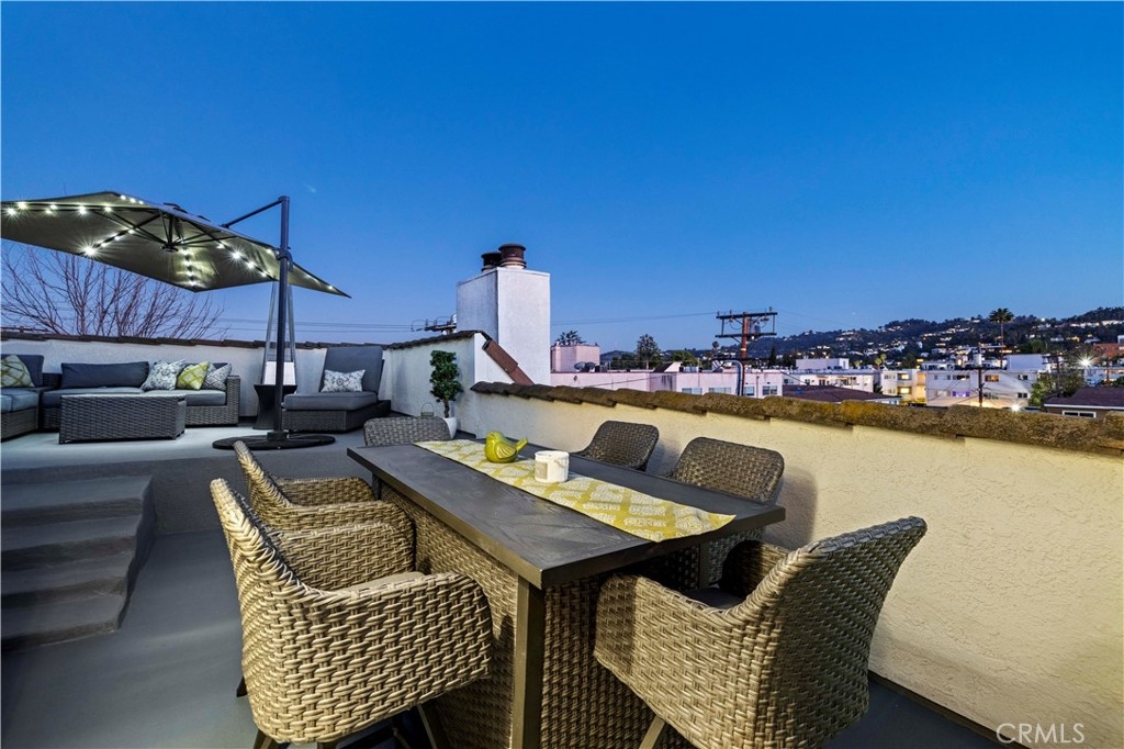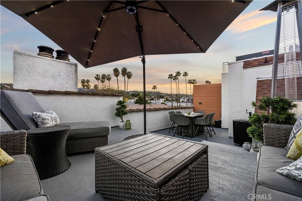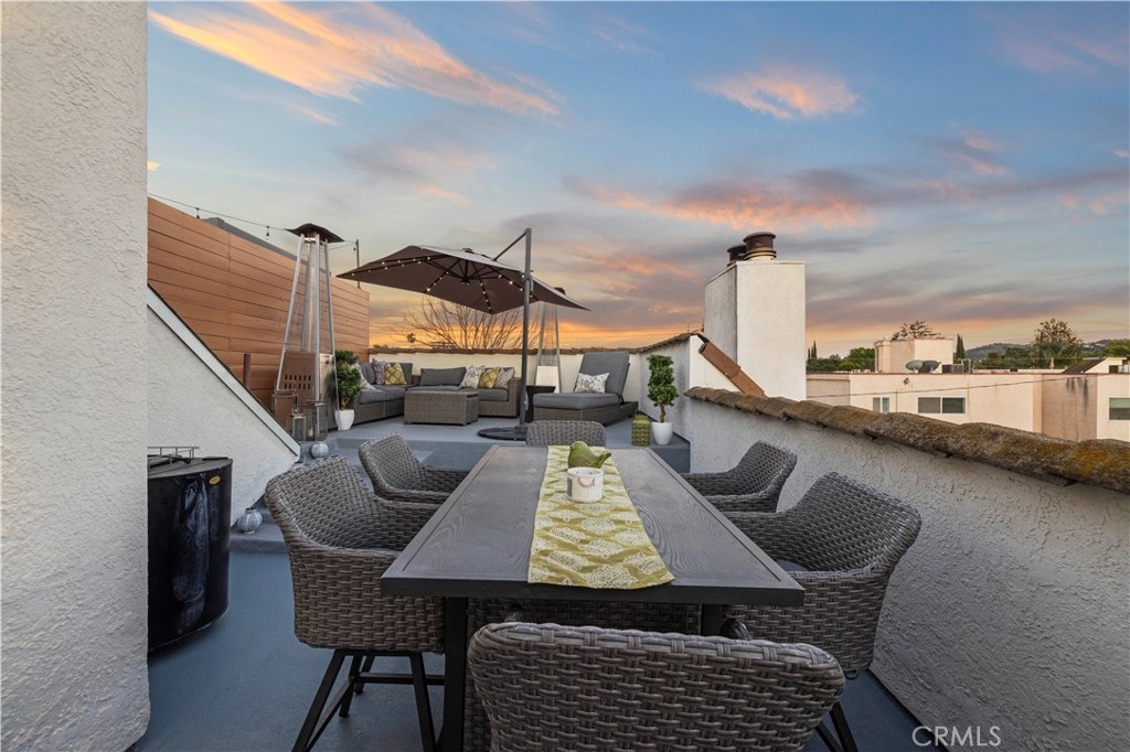 Tucked away on a charming tree-lined street, this is undeniably the best townhome in the community. Positioned as an end unit, it offers the privacy of a front yard, no shared walls on one side, and an expansive rooftop deck with the best views of the Santa Monica Mountains. Inside, the primary suite boasts breathtaking views and, like the second bedroom, features a private en-suite bathroom—offering the perfect blend of comfort and convenience. Designed for both style and function, this home features two fireplaces, one in the living room and another in the upstairs loft space, creating a cozy ambiance throughout. The interior has been thoughtfully upgraded and meticulously maintained, with LED recessed lighting, built-in guest closet storage, and an updated alarm system with cellular and emergency battery backup. Recent improvements include a brand-new roof and deck (2024), upgraded exterior wood siding, a multi-point exterior security camera system, and a new drainage pathway. A new three-ton HVAC system (2024) ensures year-round comfort, while the two-car gated garage provides security and convenience. Living here means low-maintenance luxury. The HOA covers water, exterior maintenance, and anything between the unit walls. Professional gardening is handled weekly, pest control is scheduled monthly, and even the trash cans are taken out for you—no reminders needed. And then there’s the location. Set in a vibrant, highly walkable neighborhood, this home is just steps from some of the best restaurants, including Osteria La Buca, Taisho, and Casita. Whole Foods, Trader Joe’s, and Ralphs are all within 0.6 miles, making errands effortless. For commuters, the 101 Freeway is less than five minutes away, even during peak hours. Friendly neighbors, families out for evening strolls, and plenty of dog walkers make this an inviting and lively place to call home. With its unparalleled privacy, high-end upgrades, and prime location, this townhome is truly one of a kind. Rarely does an opportunity like this come along—don’t miss your chance to own the best unit in this exclusive community.
