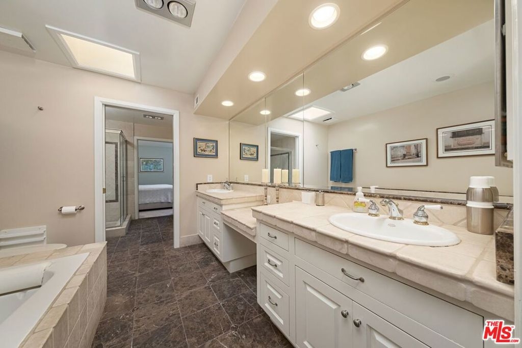 Luxury 3 bedroom. 4 bathroom townhouse in the Fashion Square Neighborhood of Sherman Oaks. Open floor plan with over 2100 sq. ft. of living space. Hardwood floors, living room with mantled fireplace and custom built-in entertainment center opens to the patio. Large, gourmet center island kitchen with stainless steel appliances, Sub-Zero refrigerator opens to the den / family room. Upstairs there are 2 master bedroom suites with high ceilings and walk-in closets. Master bath includes a spa tub, glass shower and dual vanities. Lower lever 3rd bedroom suite and private attached bath have a separate entry. 2 car attached garage with direct entry, indoor side by side laundry area. Small 10 unit building close to Westfield Mall, Trader Joe's and Ventura Blvd. restaurants and shops. Monthly dues include water and earthquake insurance. Exterior of building will be fully painted soon and has a new roof.