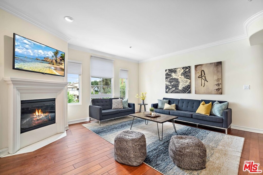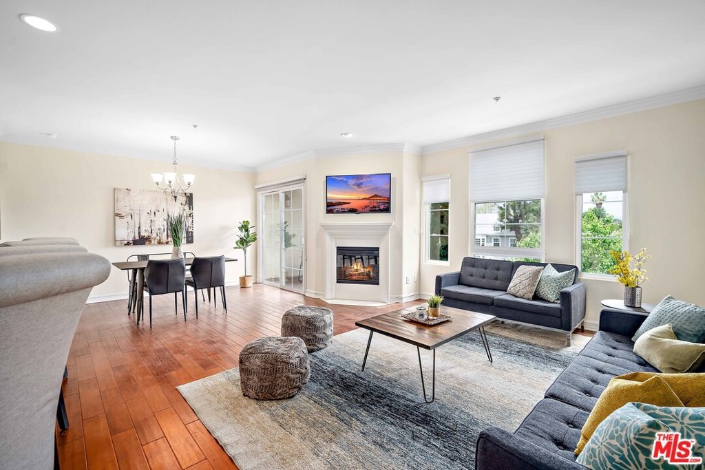 This Sherman Oaks beauty is just minutes from some of the best restaurants and shopping in The San Fernando Valley. Spacious, bright and open, you will surely fall in love with this unit the moment you step inside. The kitchen and living room are connected with an impressive granite peninsula perfect for prepping, eating or entertaining. With stainless steel appliances, loads of cabinet space and expansive countertops, the kitchen is perfect for the cook in you. Natural light fills the living room and gleams off the luxurious wood floors, making it a great spot to relax and enjoy the day. Even cozy up to the fireplace! There are two spacious bedrooms to retreat to for the evening, including a large primary bedroom with spa-like bathroom and walk-in closet. The three balconies in the unit gives you plenty of your own private outdoor space for the times you need a little fresh air. In addition the unit has inside laundry and comes with two parking spaces in a secured garage. Enjoy some community amenities such as the gym, rooftop deck and rec room. All of this can be yours! Just make sure you don't wait on this one since it won't last long on the market.