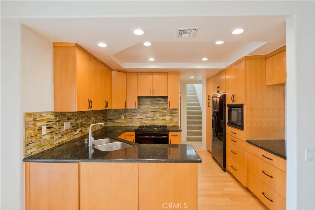 Premier penthouse with the look, feel & grandeur of a single family home! Perfectly located in the rear corner of the complex, offering the utmost privacy with serene hillside views. Upon entering you are immediately captivated by the double door entry, elegant foyer and voluminous ceilings flooded with loads of natural light! Highlighted with fantastic entertaining spaces that include its grand living room w/fireplace lounge area and entertainers balcony, separate formal dining & wonderful cooks kitchen adorned w/custom cabinetry, Caesarstone countertops, ebony appliances along with breakfast dining area and accompanied patio balcony. Encompassing three spacious bedrooms that include main floor guest bedroom & expansive master suite with romantic fireplace sitting area, dual walk-in closets, private terrace & wonderful spa styled bath w/jetted tub, separate shower & double sink vanity. Upstairs you will find the expansive loft styled third bedroom w/separate bath, walk-in storage closet & direct access to the sensational roof top deck, perfect for star gazing, intimate dining or your largest of gatherings! Additional amenities include private laundry, side/side parking & separate storage room. Located in a quiet building with sparkling pool/spa, recreation room & gym, all surrounded by mature landscape & serene sounds of its central cascading water feature. Just a short stroll to Ventura Blvd shops & restaurants complete this rare find that you will surely not want to miss!