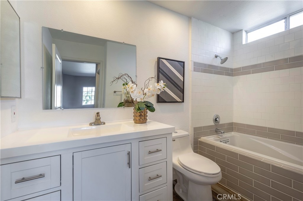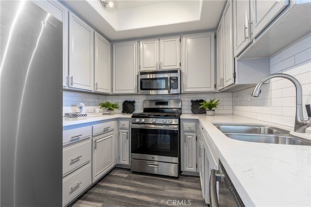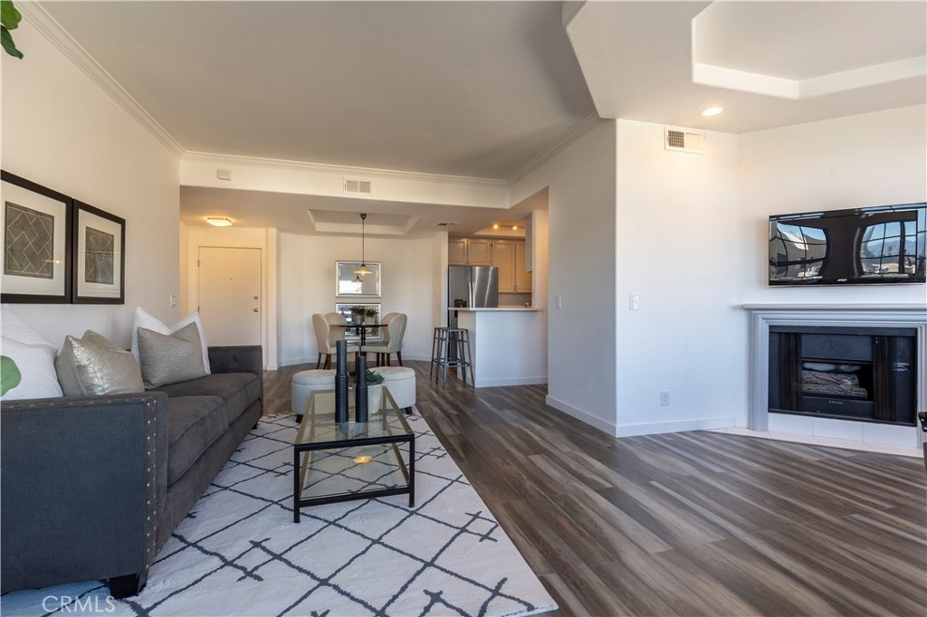 10+ rating on the location scale, just 2 blocks to Ventura Blvd's (proposed Whole Foods location), restaurants and retails stores. What is it they say about buying real estate? Location x three. If this was all this unit had, it's still a great purchase. But, it is so much more than just the great location. Freshly upgraded into today's desired decor and style. The bright open concept floor plan includes a living room, den w/ fireplace and dining area. Newer stainless steel appliances, quartz counter tops and sleek accents make the kitchen the center piece of the main living spaces. The master suite features a walk in closet and a spa quality bath with subway tiles and soaking tub. The second bedroom is surprisingly spacious with the updated 3/4 bath's location just outside the entry, it has the feel of a private bedroom suite. There is an in unit stackable washer and dryer included in the sale. The complex is a security building with a pool, elevator from the parking level and an open atrium courtyard design with no enclosed hallways or tight spaces. The unit is a rear corner unit with nice views of today's snow capped mountains in the background A very special offering!