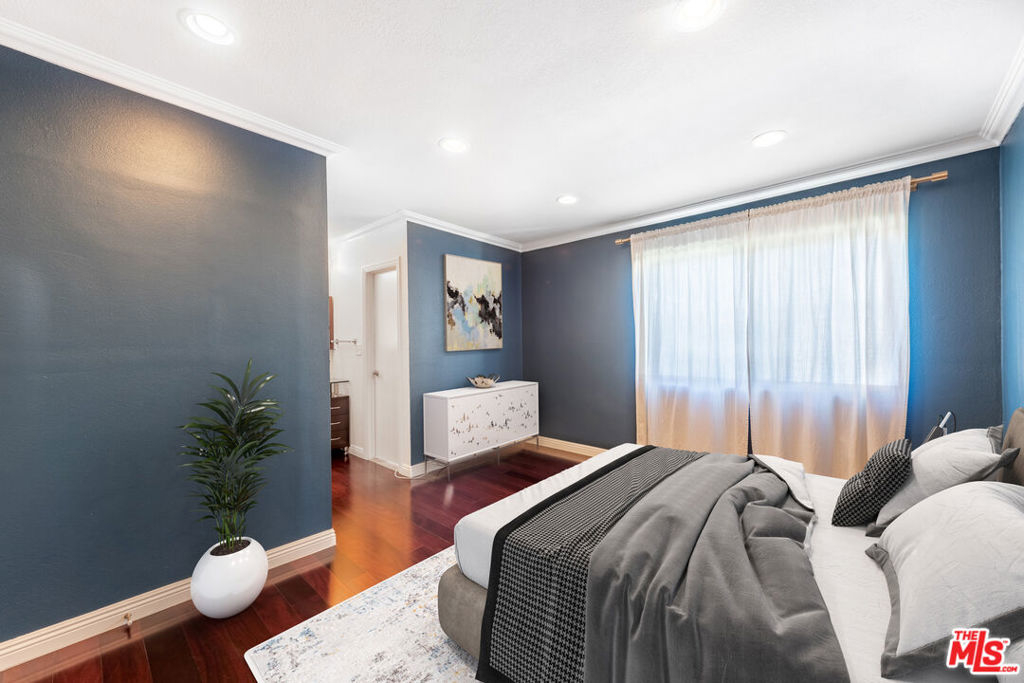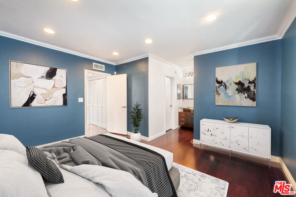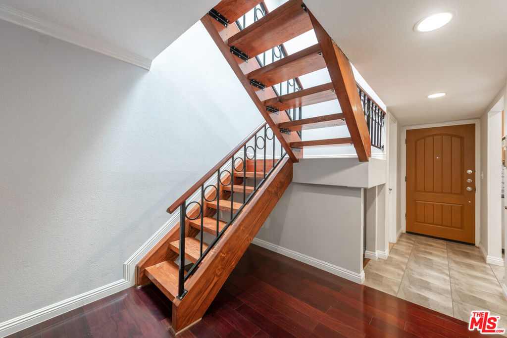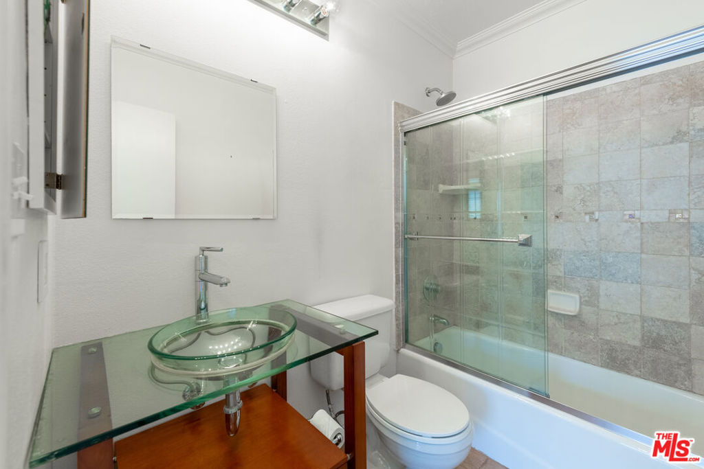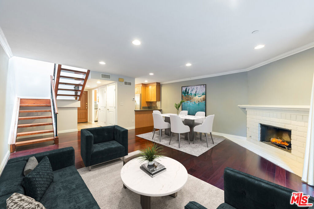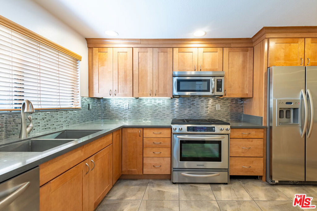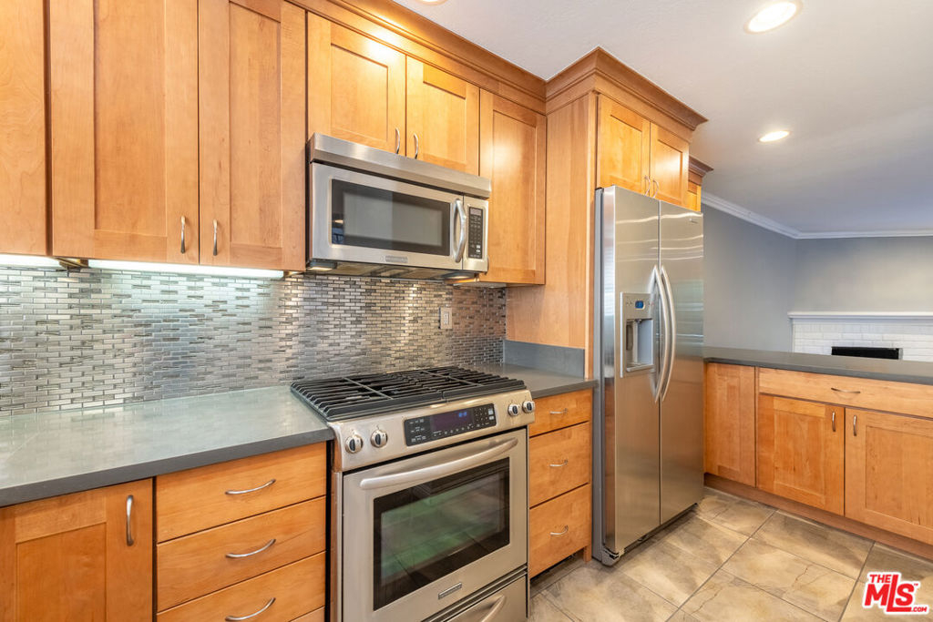 LOCATION, LOCATION! LOCATION! Located on a charming tree-lined street, just two blocks SOUTH of Ventura Blvd and very close to the great shops, restaurants and stores Sherman Oaks has to offer. This lovely and quiet 2 bed, 2.5 bath rear facing updated townhome boasts a brand-new kitchen with quartz countertops, beautiful glass tile backsplash, tile floors, stainless steel appliances, ample cupboard space and a breakfast bar. The inviting open floor plan downstairs includes handsome dark wooden floors, a cozy fireplace, adjoining dining area and a guest bathroom. Upstairs you will find the spacious two bedrooms, each with on-suite bathrooms and both complete with very large walk-in closets. Washer/Dryer also located on the second floor. Recessed lighting and crown molding, dual paned windows/doors featured throughout the unit, newer HVAC system + Security Alarm and intercom systems. Well maintained and secure 6-unit building. Gated Sub-terrain assigned tandem parking with an extra area for storage. This highly sought-after neighborhood provides easy access to the west side and all points of the Valley and Hollywood areas.