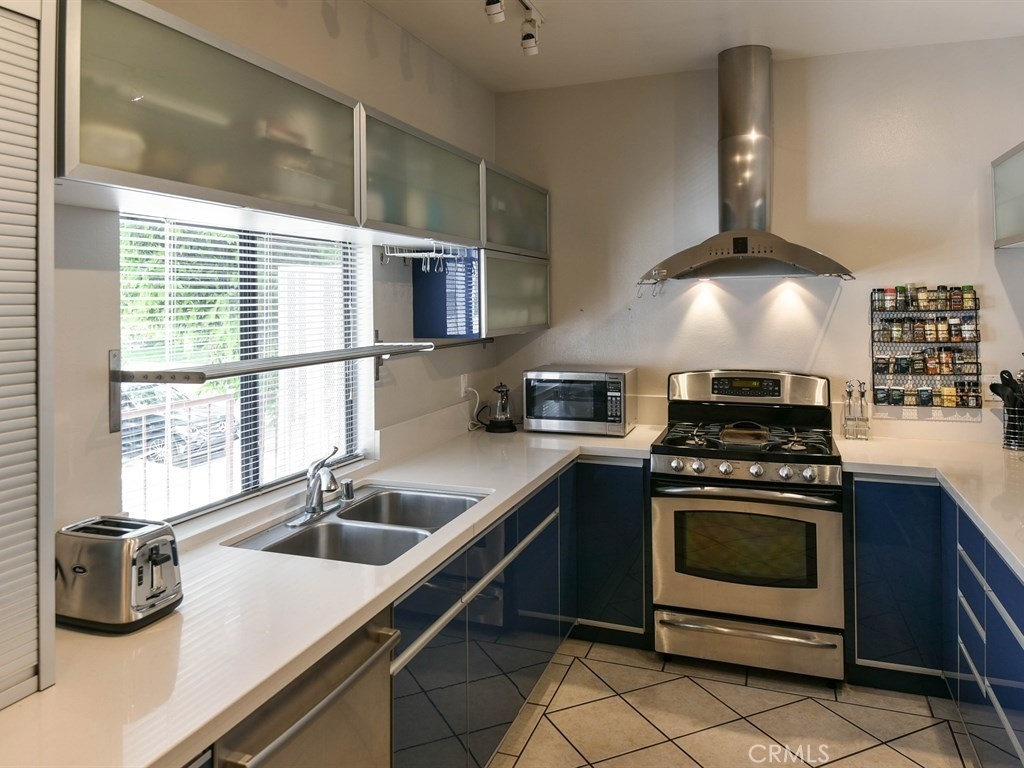 Spacious, updated 2 story townhome with open floor plan, 2 bedroom suites, and gorgeous gourmet kitchen of blue glass and quartz high tech design. Living room has a fireplace and it's balcony offers space to BBQ -- the master has a small balcony also. Enjoy the walk-in closet in the large master and the additional storage provided in the suite. The convenient laundry closet is near both bedrooms. This quiet end unit is in a 5 unit pet-friendly building with two-car tandem parking next to the very large private storage unit.