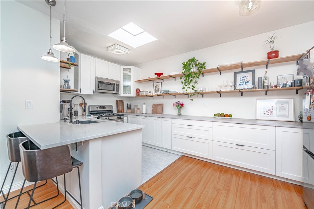 Price to sell! Located on a quiet street in a walkable neighborhood surrounded by homes, parks, and schools, is your new Sherman Oaks condo! Living here has its perks, as most errands can be done on foot and it's a very short distance to shops and the famous Ventura Blvd. This condo offers hardwood floors throughout the unit, exuding character, and comes with 2 bedrooms and two bathrooms. Recently updated, the open kitchen features new lighting, gallery-style shelving, and new dishwasher, microwave, and refrigerator appliances. Finishing off with quartz countertop bar-styled seating plus a full wall of additional countertop space. The Building features VERY LOW HOA fees, which includes communal new washers and dryers, secure parking and entry, along with a pool and sauna for unwinding at the end of a work week.