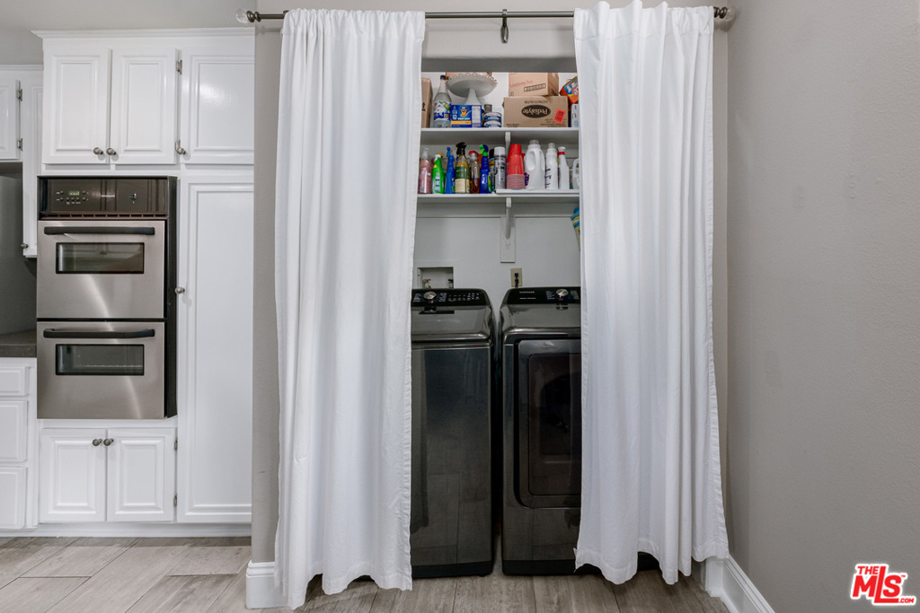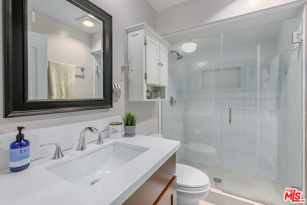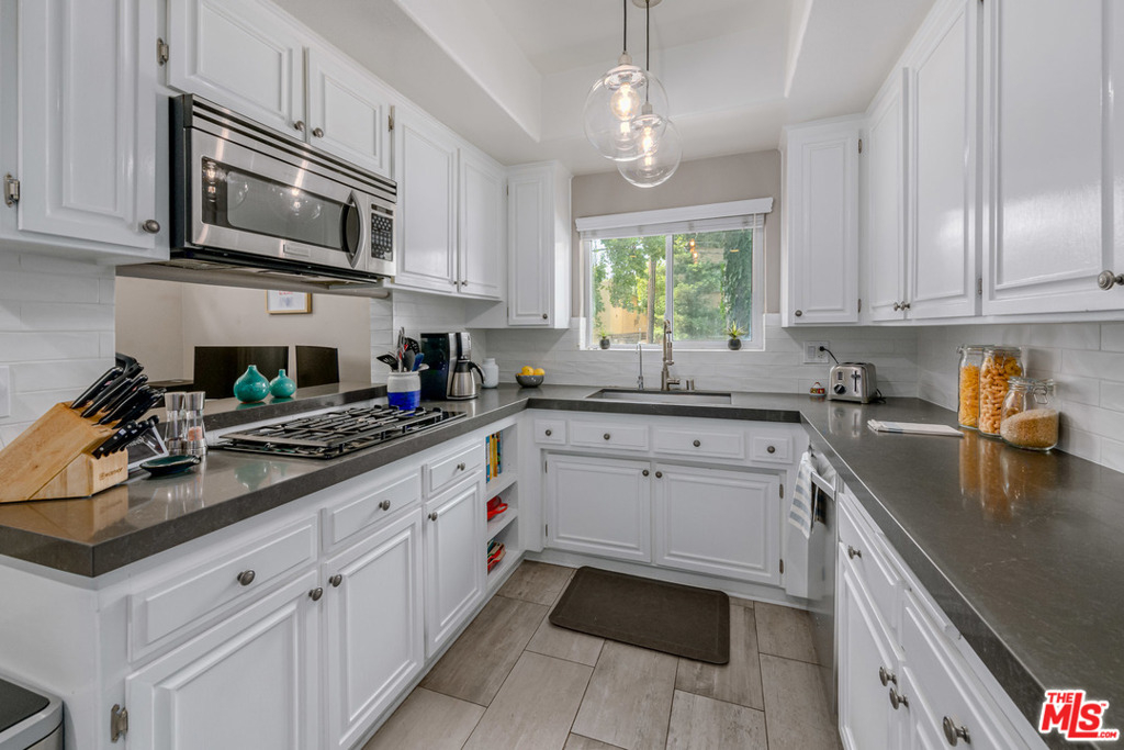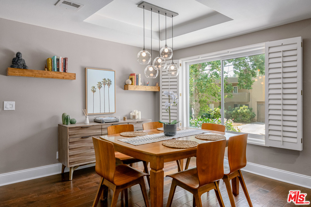 This amazing town home is just minutes away from downtown Sherman Oaks and offers spectacular mountain views with a large, private rooftop deck recently upgraded with a custom Trex Deck. The stainless Chefs kitchen features spacious Cesar Stone counters and opens to a breakfast area. This home boasts dual master suite bedrooms with custom double-paned/treated sliding glass doors and picture windows, as well as large walk-in closets and spacious bathrooms. Designer touches throughout including wood flooring, plantation shutters, and custom built-ins. Garage offers side-by-side parking spaces with a custom installed Tesla/EV charger and private storage closet - plenty of guest parking spaces available. The building complex consists of 19 units featuring a pool & gym and HOA has Earthquake Insurance included.