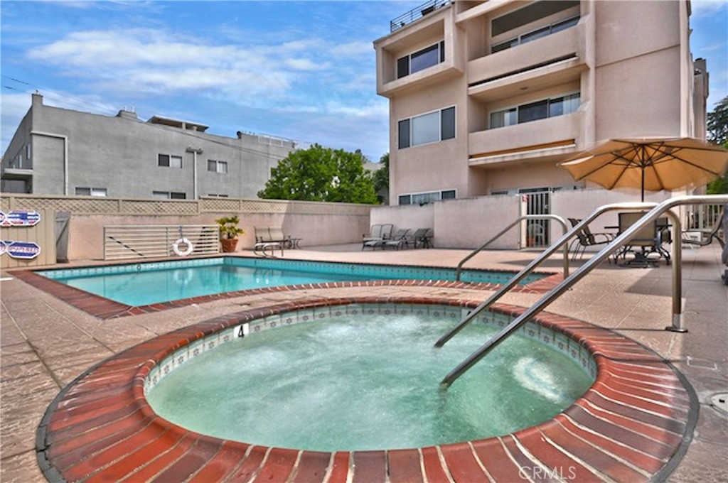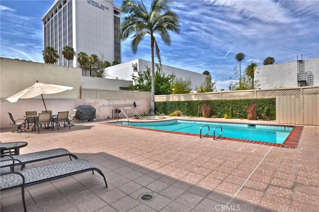 Introducing an inviting home nestled in the heart of Sherman Oaks, this 2-bedroom, 2-bathroom condo boasts expansive windows that fill the rooms with natural sunlight. Featuring wood floors and a warm fireplace the living room also opens to a large balcony, where a picturesque view awaits, overlooking the sparkling pool and spa. The well-appointed primary bedroom features its own bath and a large walk-in closet helping to provide for a serene retreat. Located in the highly desirable south of the Boulevard neighborhood, this condo embodies the convenience and tranquility of the area, promising a lifestyle of ease and sophistication.
