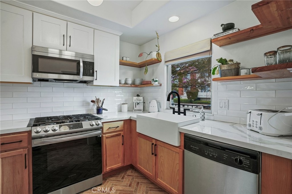 Welcome to Your Dream Home in the Heart of Sherman Oaks! Nestled in a highly sought-after neighborhood, this beautifully upgraded residence at 14702 Magnolia Blvd #104 blends contemporary elegance with unique character, offering a warm and inviting atmosphere. Every corner of this home has been thoughtfully updated, creating a space that is both stylish and functional. Step inside and experience a refreshed entry closet with solid wood shelves and a sleek hanging space—perfect for organizing with ease. The heart of the home features a brand-new oven in a well-appointed kitchen, complemented by updated lighting and elegant curtains, including blackout options for ultimate privacy. The master bedroom is a true retreat, boasting a barn door for rustic charm and a fully redesigned master bathroom that exudes luxury. The vanity, a stunning antique dresser conversion, makes this space truly one-of-a-kind. A new vanity also enhances the downstairs bathroom. Enjoy cozy evenings by the fireplace, now adorned with exquisite vintage Mexican tiles, adding a distinctive touch to the living space. Outdoors, the balcony features newly installed dividers with planters, bringing a serene vibe to your private oasis, along with an upgraded water hose for convenience. Security and modern amenities meet seamlessly with the addition of an electronic lock on the front door and a new camera installed at the back, ensuring peace of mind. A tankless boiler rounds out the list of updates, promising efficiency and comfort. Don’t miss this exceptional home that combines character, modern upgrades, and a perfect Sherman Oaks location. Schedule your showing today!