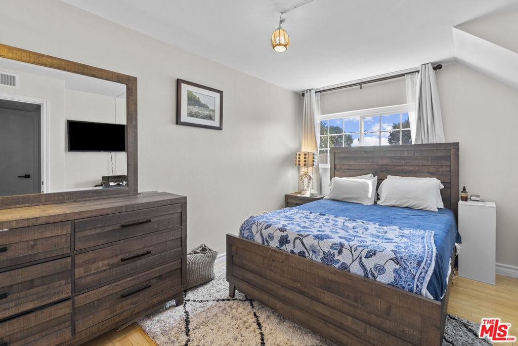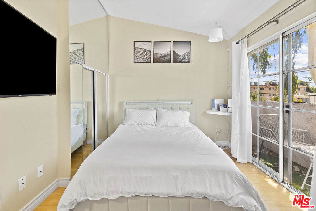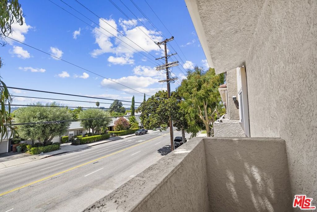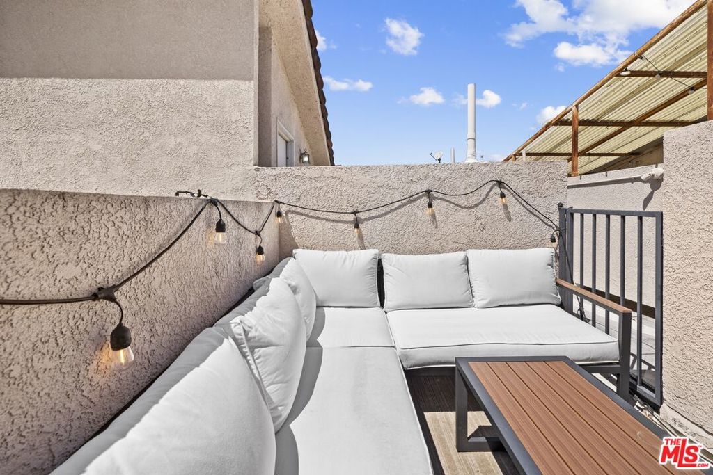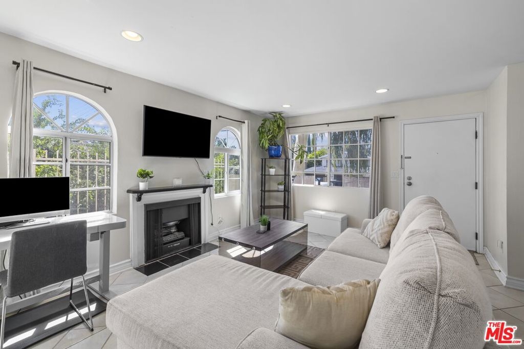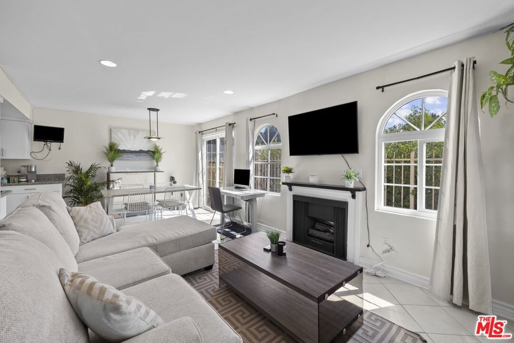 Light, bright end-unit in the heart of Sherman Oaks with furnishings included! This 2 bedroom, 2.5 bathroom condominium offers an excellent central location in a gated complex with very low HOA fees. Accessed directly from outside, the corner unit features a gated entry-level wraparound patio enclosed in mature landscaping. Inside, the living room is flooded with natural light through arched windows and features a gas fireplace, wet bar, and mounted TV. The dining area is located next to sliding glass doors with patio access and flows into a well-equipped kitchen. There are two-bedroom suites upstairs with wood floors, and the primary bedroom features a vaulted ceiling, two closets, built-ins, and a private balcony. On the upper level, the property offers a laundry area with a side-by-side washer and dryer plus access to a private rooftop deck with tree-top and mountain views perfect for enjoying picturesque sunsets in the Valley. Additional features include central heating and A/C, an entry-level powder room, a deep outdoor storage closet, and two side-by-side parking spaces in the gated garage. The low monthly HOA includes water, trash, sewer, and maintenance of common areas. Enjoy excellent proximity to highly rated schools, Sherman Oaks Recreation Center, Sportsmen's Lodge, an electric vehicle charging station just down the road, and convenient access to both the 101 and 405 freeways. This one won't last long!