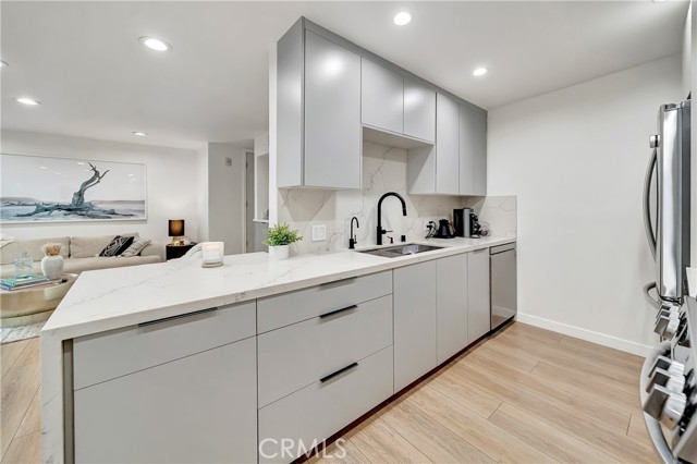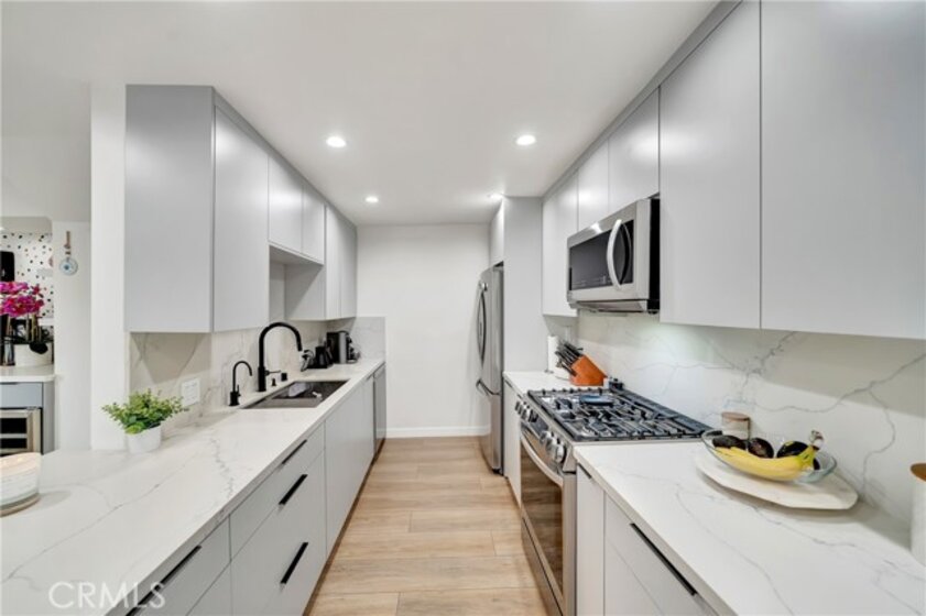 Welcome to your stylishly remodeled townhouse-style condo in the heart of Sherman Oaks! This stunning 2-bedroom, 2.5-bath end-unit offers the rare luxury of no neighbors above or below and was fully renovated in 2022 with high-end upgrades, including soundproof drywall, soft-closing kitchen cabinetry, stainless-steel appliances, and a built-in wine cooler. The light-filled living room features an elegant fireplace, built-in bar, and powder room, flowing seamlessly into the dining area and updated kitchen with quartz countertops and modern finishes. Upstairs, you’ll find two spacious primary suites, each with its own bathroom and custom-built closets for maximum comfort and privacy. The top level offers a dedicated laundry area with washer and dryer, plus access to your private rooftop deck — perfect for entertaining or enjoying serene treetop and mountain views. Additional highlights include two side-by-side parking spaces in a secured gated garage, central air and heat, ample storage, and a low HOA covering water, trash, insurance and common area maintenance. Located in prime Sherman Oaks, you are just minutes from Trader Joe’s, Gelson’s, the Sherman Oaks Galleria, Recreation Center, and easy freeway access (101 & 405). A perfect blend of modern living, privacy, and location; this is a must-see gem in one of the Valley’s most desirable communities. Offers are due by Tuesday November 11, 2025 5PM.