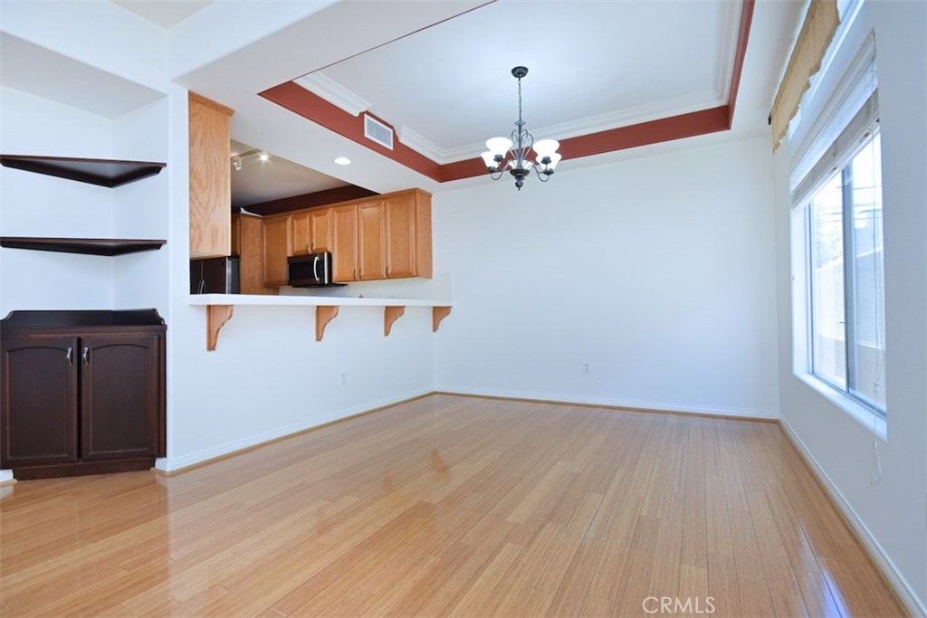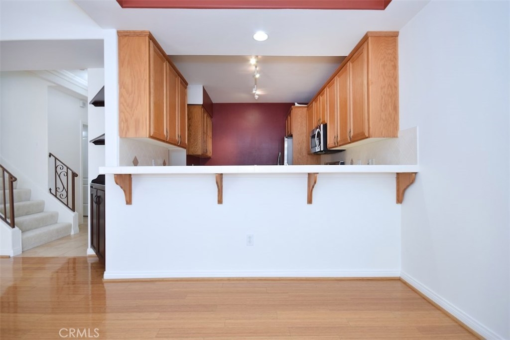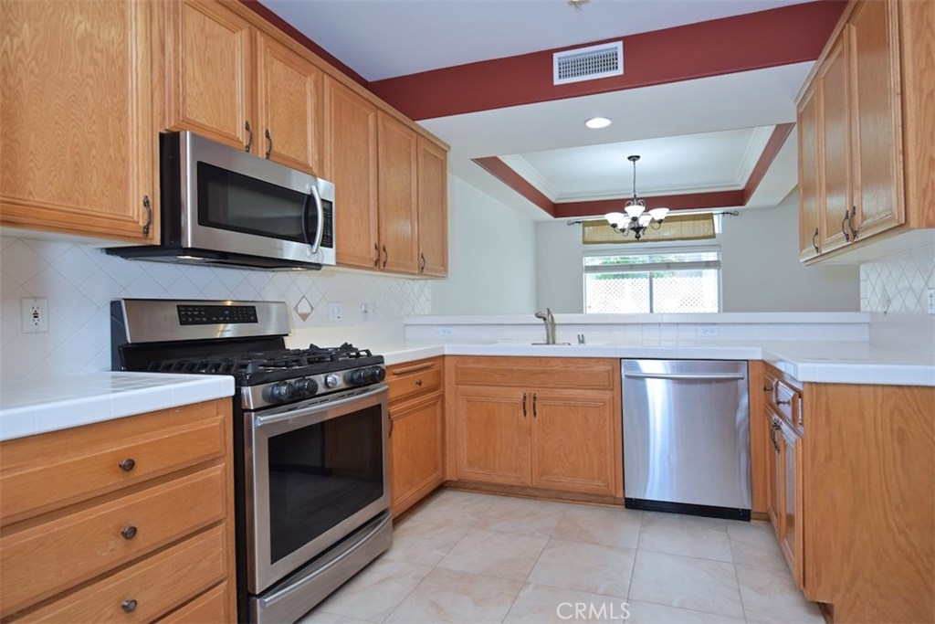 Reduced, priced to sell! Presenting a clean, spacious and stylish tri level townhome with a private rooftop deck right in the heart of Sherman Oaks! An open entryway with gorgeous travertine tile leads into a large living room with gas fireplace, recessed lighting and a separate dining area with elegant coffered ceilings. The kitchen features stainless steel appliances, a custom built countertop with two deluxe built in wine fridges, and plenty of counter and cabinet space. Downstairs also boasts a convenient half bathroom with a huge under stairs closet. Upstairs features the master en suite bedroom with recessed lighting, a walk in closet as well as an additional sliding closet, dual sinks in the bathroom and lots of natural light. Adjacent to the master is the second bedroom and bathroom, a stacked laundry closet and two additional closets for loads of storage space. The third floor features an open space, ideally suited for an office, as well as access to the private rooftop patio. Other conveniences include central heat and air, recessed lighting throughout, a prewired home alarm system and lots of storage space. Featuring a pool, private grassy area, underground gated parking and low HOA dues, this Mediterranean style complex is well maintained and located close to freeways, canyon roads, schools, shopping and some of the best dining selections in the Valley!