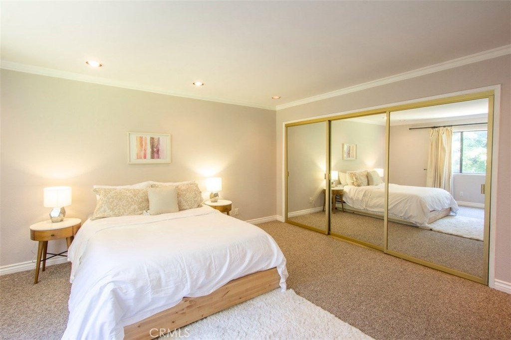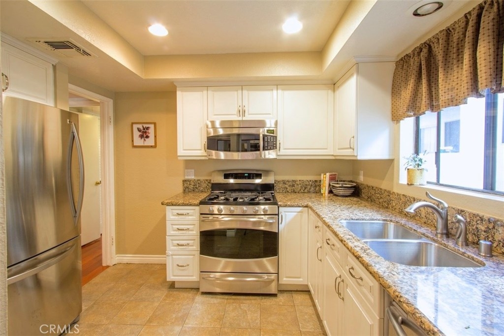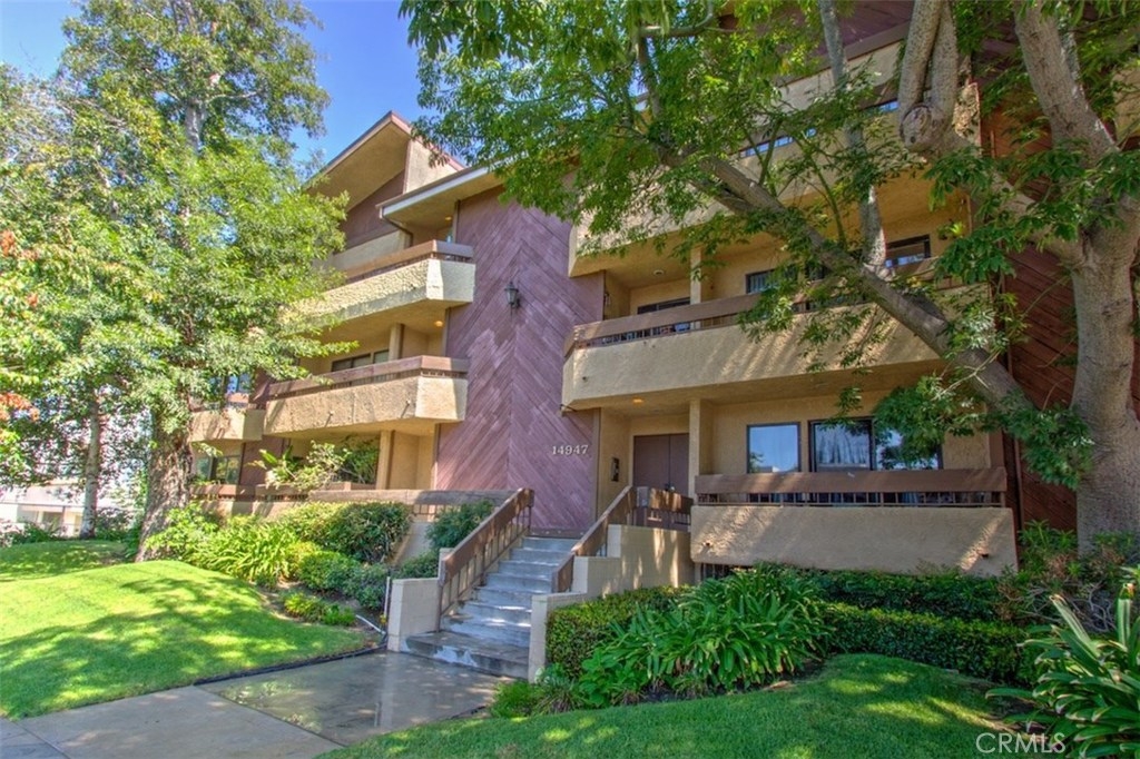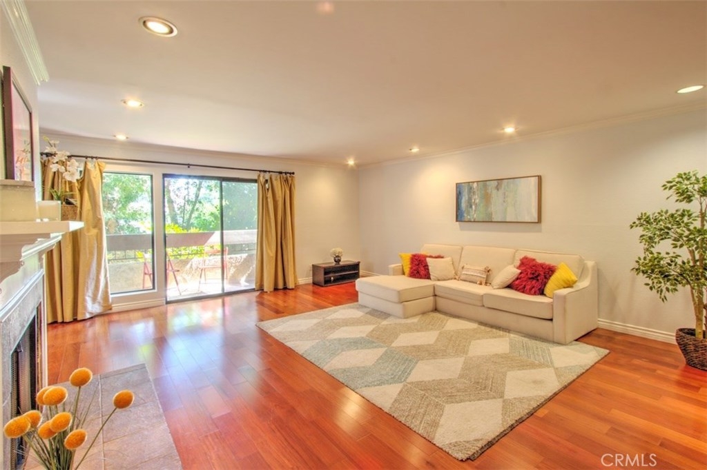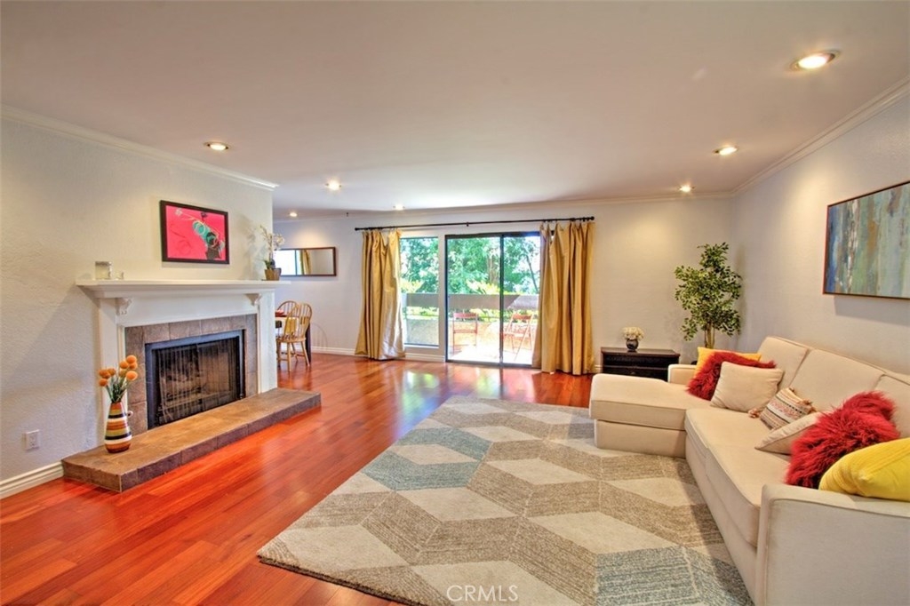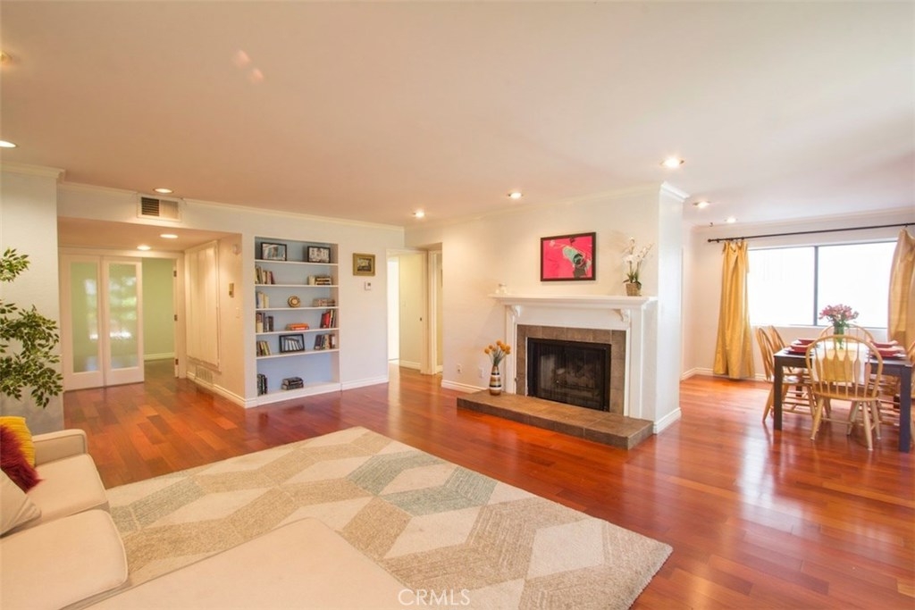 Beautiful updated condo in prime Sherman Oaks location. Located in the rear of this small 12 unit building, the balcony overlooks the pool, spa and trees from the beautiful residential neighborhood. Spacious living room has built-in bookshelves and a gas fireplace. Kitchen has stainless appliances, tile floors and tons of cabinet and counter space. Huge master suite has plenty of closet space and a fully updated master bath. 2nd bedroom has its own updated bath as well. Besides the 2 bedrooms there is a perfect office with beautiful bi-fold glass doors to make this area private. Washer and dryer is located inside the unit. There are hardwood floors located in entry, living room, office and dining room. Other wonderful amenities are recessed lighting, side by side parking, extra storage, low HOA $290.00.
