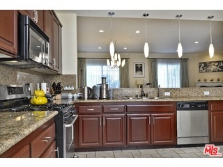 Incredible, private corner unit with only one common wall in a small building South of the Blvd with EZ Westside access. 3 level townhouse with beautiful cherry and tile floors brighten up the unit. Dramatic living room with high ceiling & fireplace. Huge gourmet kitchen with granite counters, custom cabinetry and stainless appliances. All three bedrooms are upstairs, gorgeous master suite with walk-in closet, double sink, spa tub and a rain shower. Big roof top patio with vast views. Direct access from the garage with two side by side parking spaces. The unit features two zones for a/c and heat to allow for a maximum efficiency, laundry is inside the unit. Fantastic home in walking distance to restaurants, movies and Whole Foods. Building has guest parking, HOA fee include EQ insurance.