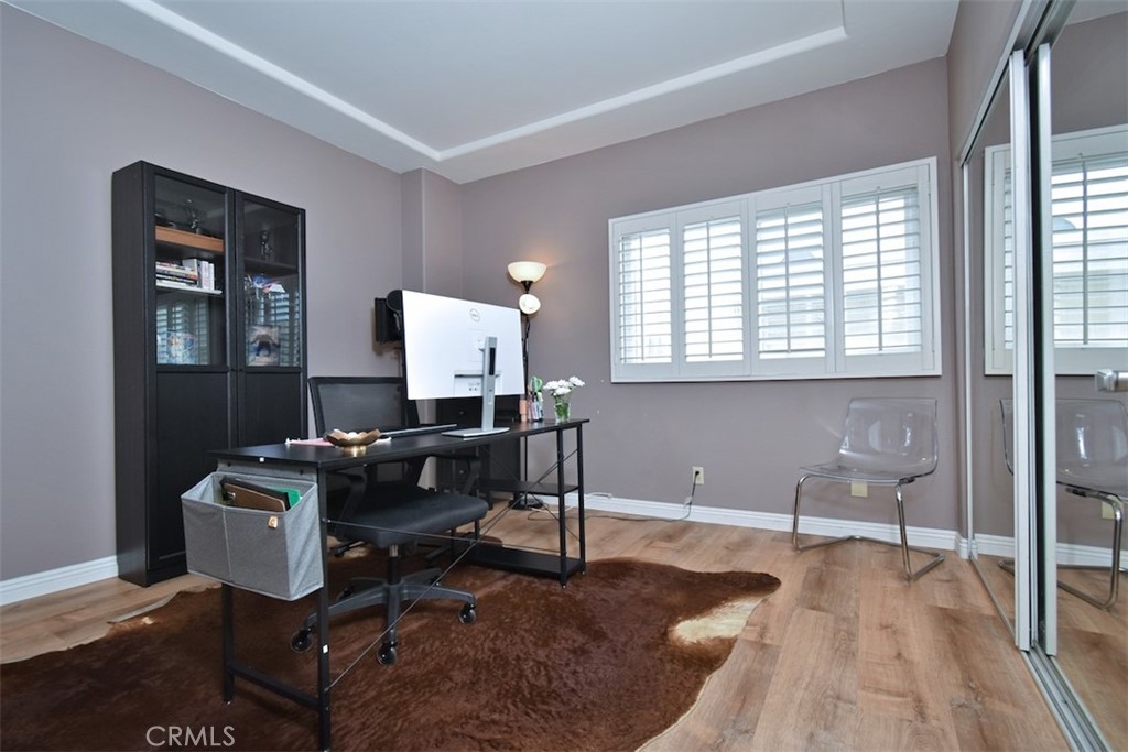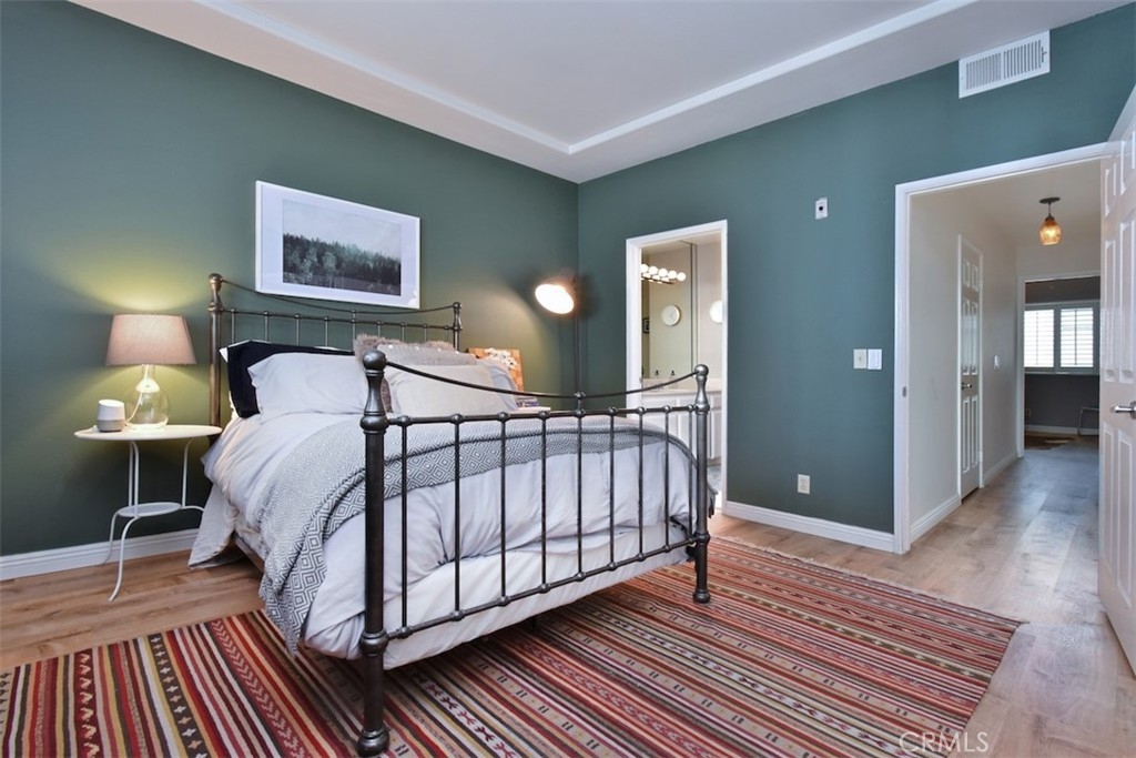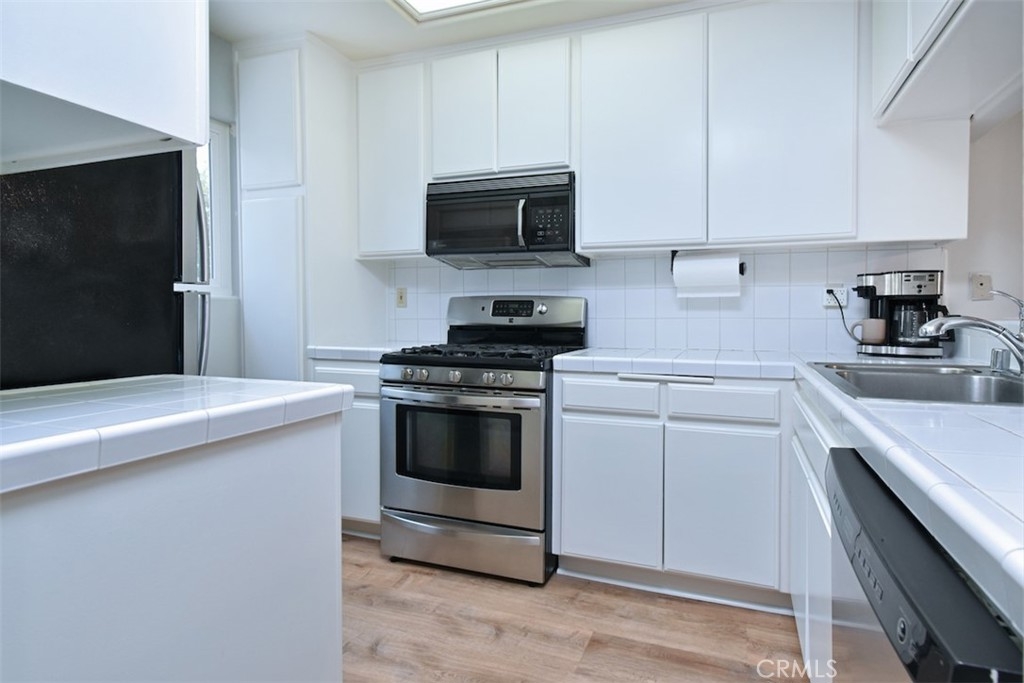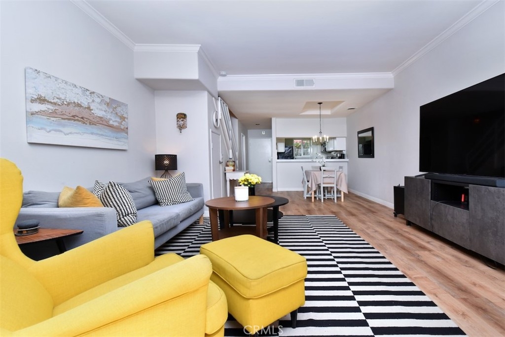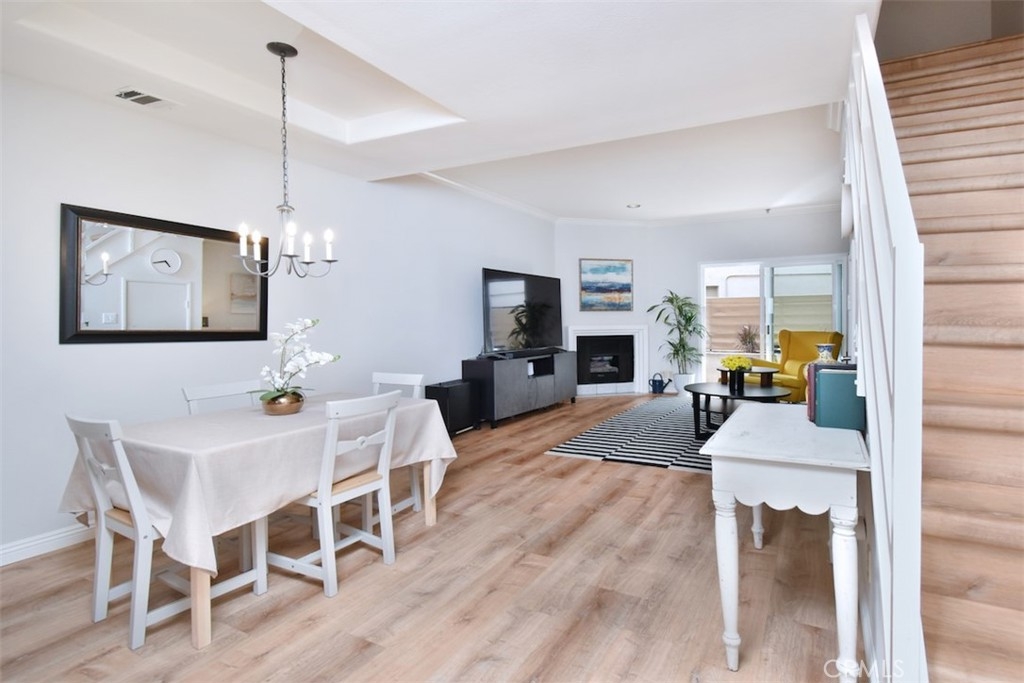 Nestled within the vibrant heart of Sherman Oaks, you'll discover this well maintained and freshly painted townhome style 2 bedroom 2.5 bath condo. Step inside and be greeted by the elegance of crown molding and Lifeproof vinyl flooring throughout. The living area features a cozy fireplace, space for a dining table and leads to the outdoor patio – a perfect spot to bask in the sun or nurture a small garden. Energy-efficient dual-pane windows are adorned with elegant plantation shutters, enhancing both ambiance and practicality. The kitchen features stainless steel appliances and stylishly painted cabinets. Two spacious sized bedrooms, each boasting an en-suite bath, provide an oasis of comfort and privacy. The stairwell's skylight infuses the surroundings with a warm, inviting natural light. One of the highlights of this unit is the private roof deck graced with mountain peak views. Additional features include a brand-new stackable laundry unit on the second floor, a one year old HVAC system, Nest thermostat, smart light switches and two side-by-side secured parking spaces. Located within the coveted Dixie school district and one block away from Ralph's, Whole Foods, dining, shopping, and entertainment options. Do not miss out on this golden opportunity – embrace the chance to make this quintessential gem of Sherman Oaks your new home.