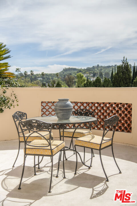 Townhouse-style Mediterranean residence offering three levels of beautifully crafted living, crowned by a private rooftop patio with sweeping mountain views. Though technically a condo, the layout and design live like a true townhouse, delivering both privacy and architectural presence.A dramatic entry opens to a light-filled living room featuring a fireplace, rich hardwood floors, and striking wood-beamed ceilings. An elegant curved staircase anchors the space, leading seamlessly into the open-concept dining area and kitchen, complete with breakfast counter and stainless steel appliances. A powder room finishes the main level.Upstairs, a circular landing leads to two secondary bedrooms with coved ceilings and a full bath, along with a spacious primary suite offering a walk-in closet and en-suite bath.The third level presents a versatile family room or potential third bedroom, with a dedicated laundry area and ample storage. This level opens directly to the rooftop patioan ideal setting for entertaining or unwinding against a backdrop of mountain vistas.Ideally located just off Ventura Boulevard, moments from coffee shops, restaurants, and retail. Additional amenities include a well-managed HOA with earthquake insurance and two-car parking in a secure subterranean garage.
