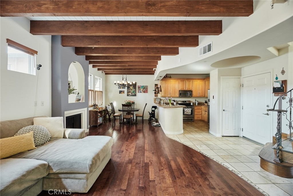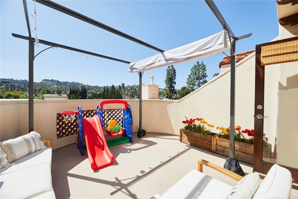 This sophisticated and beautiful one of a kind townhouse is located in "Prime" Sherman Oaks is a rare find. It's location is also unmatched as it finds itself walking distance to restaurants, bars and shops up on Ventura Blvd. The moment you enter you'll understand the thought that went into it's design. As you enter the unit you are greeted by both your expansive kitchen and main living space canopied by an open beam ceiling and one of many balconies this property offers. As you make your way on to the 2nd floor both a bedroom with its own private balcony and a spacious naturally lit master bedroom and welcoming with a large walk in closet, pass through on suite bathroom and plenty of storage. There is a beautiful loft on the 3rd floor that provides a laundry area and an extremely flexible space. The top floor is perfect for any of your needs and can be made as a gym or an office or even a guest area perfect for entertaining. Just outside of the loft area you'll find a private, spacious and beautiful rooftop type deck which has a stunning view of the hills and would be perfect for lounging, entertaining, or even just your morning coffee.
