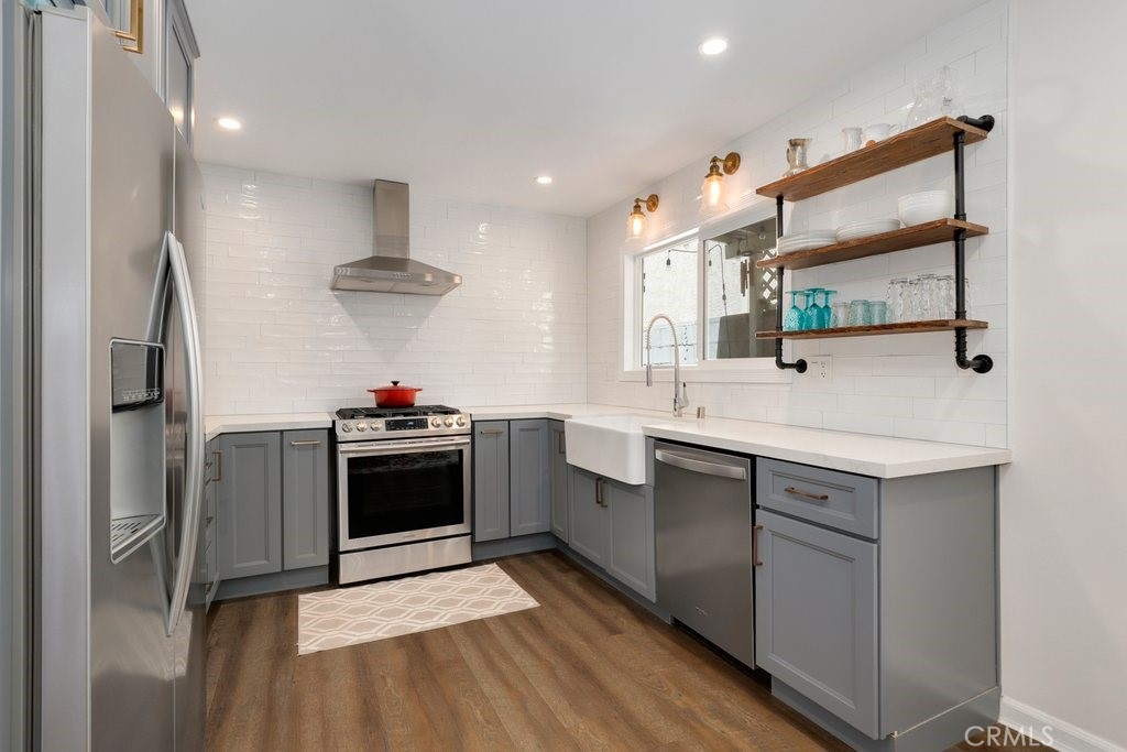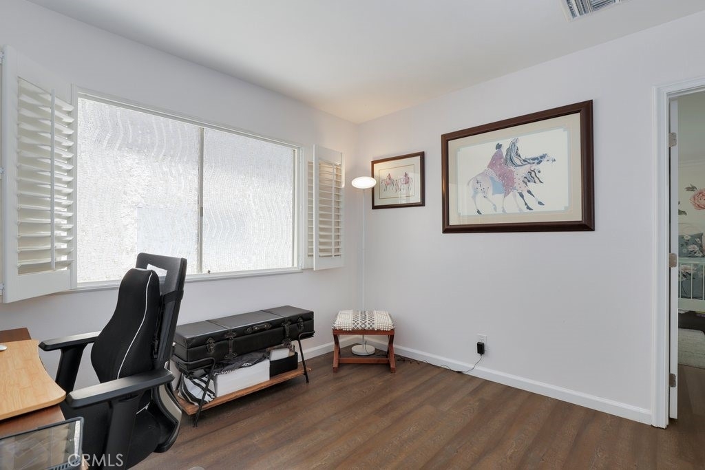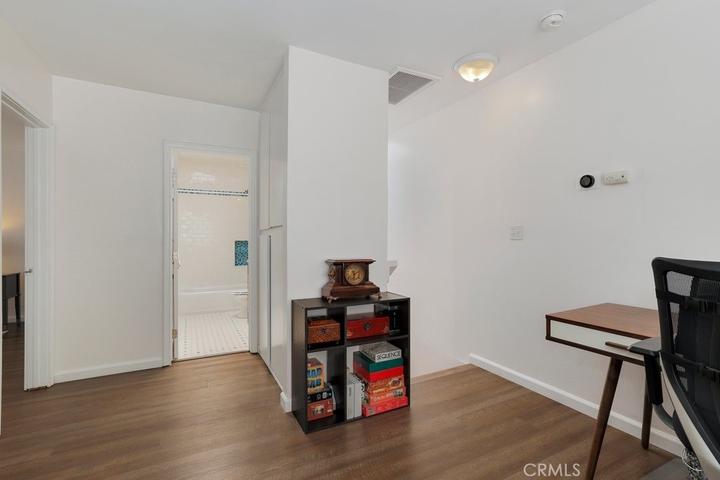 Pristine townhouse-style unit situated in the heart of Sherman Oaks. This lovely, updated unit is facing the street with its own front and side patios. Enter the open concept layout, light and bright throughout, with living room, dining room and kitchen. The kitchen has been recently updated with quartz countertops, newer appliances and refinished cabinets. Continue to the second floor with a bonus landing room that can be used as an office, den or workout room. Two spacious bedrooms and a full bath with an abundance of storage space. Some of the great features include: wood vinyl floors, in-unit, stackable washer and dryer, crown moldings, updated throughout, 3 lovely skylights, largest unit in the complex, two sliding glass doors, reasonable HOA dues, recently installed A/C unit (3 years ago) and two reserved parking spaces. Within close proximity to freeways, Ventura Boulevard, eateries, shopping, entertainment and much more! Move-in ready and a MUST SEE! Don't miss this opportunity!