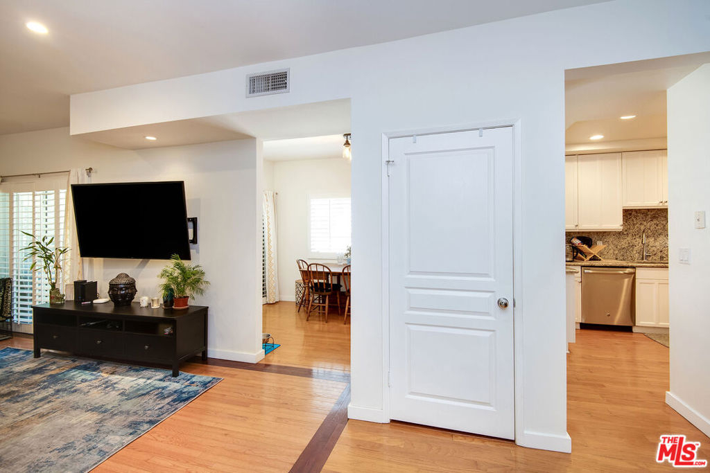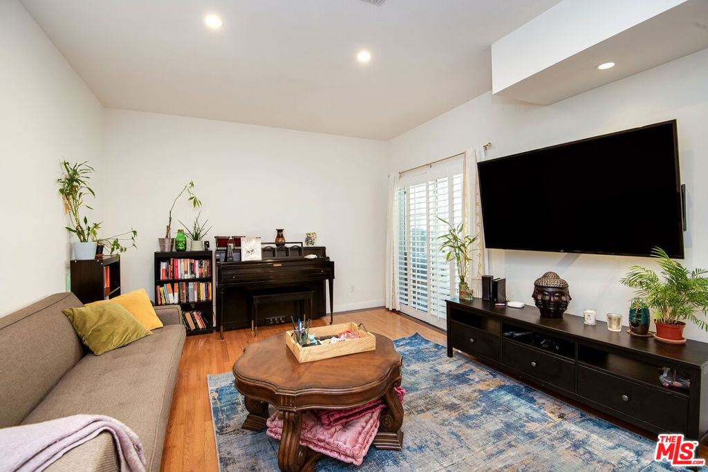 Stylish townhouse in boutique complex of 6 units. Appealing inside location away from street. Gleaming hardwood floors with inlaid accent, recessed lighting and plantation shutters finish the 3 + 2.5 home off nicely. Living room and dining room open to enclosed sunroom for gym/yoga/hobbies. Bright kitchen has high-end feel with granite countertops, full height backsplash and breakfast bar, crisp white Shaker style cabinetry and stainless steel appliances incl. convection oven over gas range. Upstairs, the spacious main suite opens to private partially screened balcony with sun/shade for gardening and relaxation. Updated en suite has walk-in double shower. Add'l updated bath shared by 2 guest rooms, 1 with access to balcony. Extra perks incl. Nest, pre-wired for security system, access controlled lobby entrance and 2-car gated subterranean garage. Take picturesque Coldwater Cyn. to Beverly Hills; close to fwy access, Whole Foods and more.