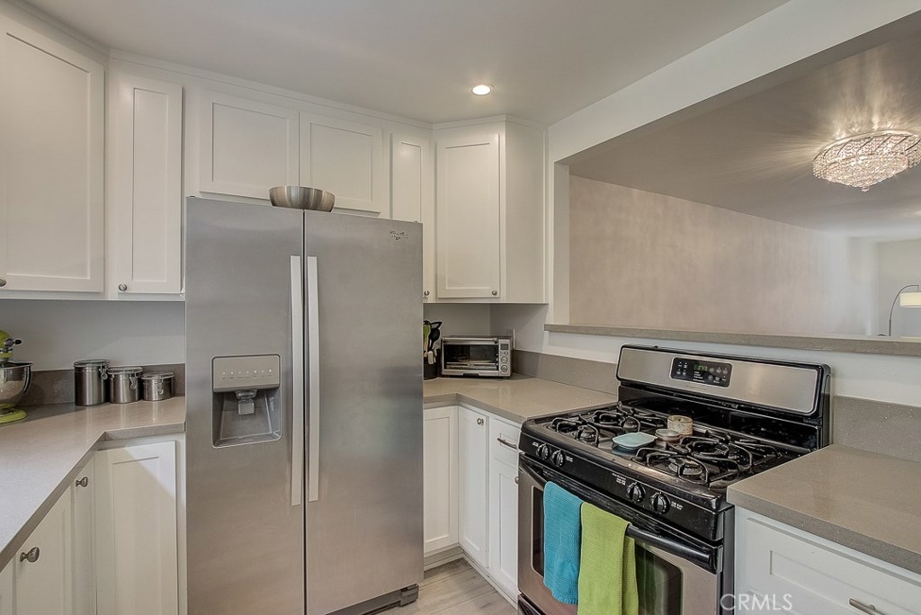 Stunning Sherman Oaks, QUIET INTERIOR LOCATION, open concept contemporary townhouse beautifully remodeled from top to bottom. Two bedrooms, two and a half baths. Designer touches throughout. Wonderful floorplan highlighted by the updated kitchen with stainless steel appliances, Cesarstone countertops, and custom cabinetry, flowing to the living/dining areas featuring newer wood floors, gorgeous chandeliers and a fireplace, all leading to the private patio. A remodeled powder room rounds out the first floor. Upstairs to both bedroom suites including the amazing master bedroom retreat with vaulted ceilings, walk in closet and spacious, spa like, master bath! Additionally, a junior bedroom suite is adjacent to the master and has it’s own full bath. Newer HVAC, recessed lights and IN UNIT LAUNDRY!! Fantastic smaller (12 unit) building, well maintained, with gorgeous common area patio and pool at the back of the complex. Centrally located to the freeways and the best of Ventura Blvd. Don’t miss this excellent opportunity!!