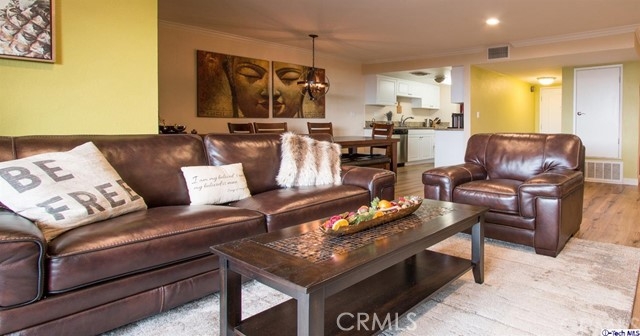 Presenting, the lowest priced condo in Sherman Oaks! Your immaculate new home is fully updated and move in ready. Gorgeous open floor plan with textured wide plank laminate floors, crown moldings and recessed lighting. Living room opens to large private covered patio perfect for entertaining. Kitchen features granite countertops, stainless steel appliances and stacked washer and dryer. Your master suite features dual sink vanity with granite countertops, a hall of mirrored closets with custom built ins and private bathroom. The second bedroom can be used as a den or office. Part of the coveted Addison Place Resort Style Community, the HOA is meticulously maintained with all new paint and carpeting in the common areas and includes hot and cold water, maintenance, a two story recreation room, sparkling pool and barbecue area complete with dual stainless steel grills and a fireplace to relax and enjoy your evenings. This home is centrally located with easy access to the 101 and 405 Freeways. Walking distance to Sherman Oaks Fashion Square, Notre Dame Highschool and countless retail and dining options. Run because this one will definitely not last. Building is not FHA approved.