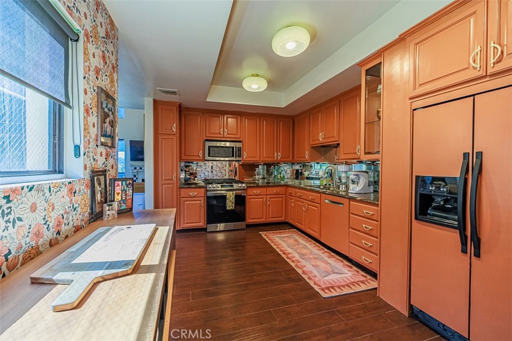 Outstanding SHERMAN OAKS location with $30K in recent upgrades. Don’t miss this opportunity—a 3RD FLOOR PENTHOUSE SUITE with western exposure and an expansive living room featuring 20’ ceilings, a wet bar, and access to your private covered balcony with unobstructed views! The stunning remodeled kitchen has stainless steel appliances, ample cabinets for storage, and a breakfast nook. Adjacent is a large dining area perfect for hosting large gatherings. The family room with a fireplace that can be either gas or wood, makes for a more casual retreat. The penthouse includes a stackable washer and dryer. Full of natural light, the exquisite primary bedroom features soaring ceilings and three closets, including a large walk-in. The updated master bath offers dual vanities, a spa tub, refinished cabinets, new sinks, faucets, and lighting. The updated secondary bedroom has direct access to the beautiful covered outdoor balcony with new flooring, fan installation, and a new balcony railing in 2024. This complex offers many amenities, including a pool, spa, and subterranean parking with two secured tandem parking spaces. The property is near the 101 freeway, Beeman Park, Studio City Branch Library, Riverside Elementary and Whole Foods market are a block away. Also, restaurants and local favorites: Hardy’s Meats and Deli and M&M markets, Gelson’s, shopping, with the Westfield Fashion Square just two blocks away. In addition, you will find Hollywood just 7 miles away, 11 miles “as the crow flies” to the ocean, LA proper 14 miles, and 21 miles to LAX. Come and see for yourself why this Penthouse unit lives like a house! You don’t want to miss this chance to enjoy California sunset views from the serenity of your private enclosed balcony. This is a rare opportunity to own this beautiful home. This unit is truly a must-see! …