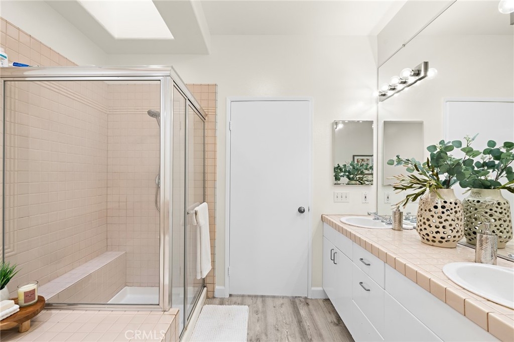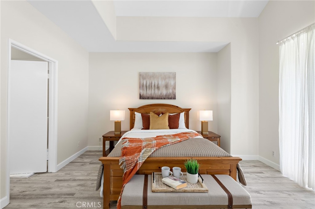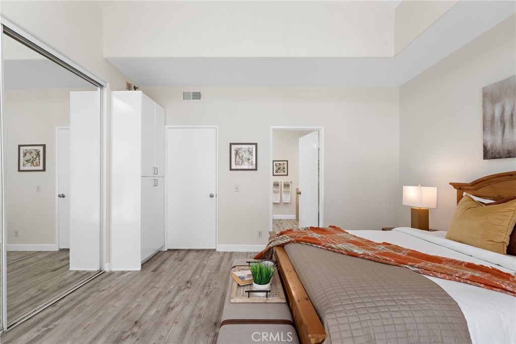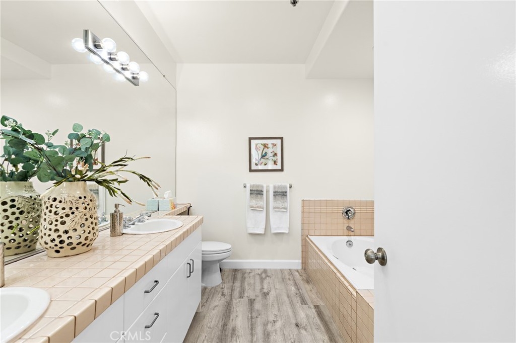 Located in highly sought after Sherman Oaks, this is the bright and spacious townhome you've been searching for. Filled with charm from the moment you enter and at every turn throughout, this upgraded tri level stunner has it all. From the lower level in-unit laundry, to the pinnacle of privacy on your own roof top patio, your home search is over. Featuring over 1300 sq. feet of living space, you'll be impressed with the well appointed kitchen, dedicated dining area and sunken living room with a fireplace and private patio. Upstairs, two bedrooms await, with the primary bedroom featuring soaring vaulted ceilings, a wall of closets, private balcony and a beautiful en-suite with a jacuzzi tub and glass enclosed shower. To add to what’s already plentiful, you'll also enjoy luxury vinyl flooring, central air and heat, a dedicated laundry area and subterranean parking with two side by side spaces with direct access to the unit. And the show stopper of this special home is the large, private, rooftop deck on the top level. With scenic views of the Santa Monica mountains, it's the perfect place to unwind from the day, host the next BBQ with family and friends or sunbathe on your days off. With the best shopping nearby and quick and easy access to the 405 and 101, enjoy the best of SoCal living and welcome to the endless possibilities of life in beautiful Sherman Oaks.