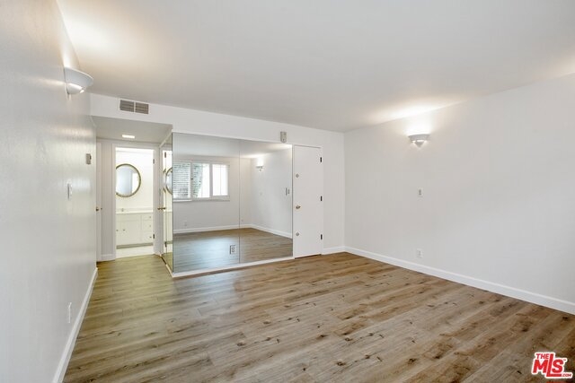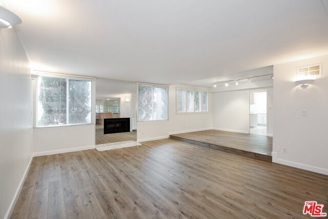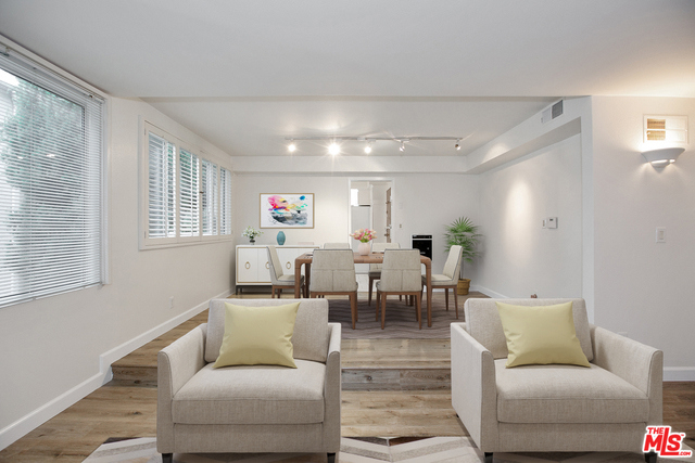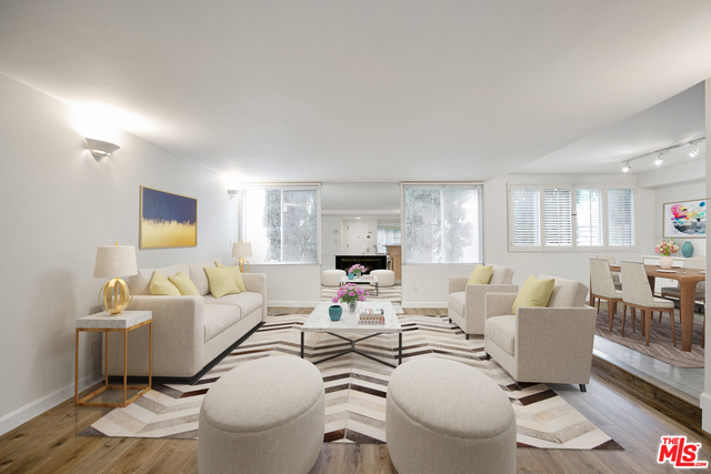 Awesome Baron Manor condo south of Ventura Blvd. Great open floor plan, with brand new floors and newer appliances. As soon as you enter you can appreciate the beauty of this fantastic condo from the arch way leading to the step-down living area with fireplace and large bar, to the new flooring, plantation shutters and recessed lighting and step up dining area. Kitchen is complete with newer appliances and a large sink with views out to the front of the building and a separate back door to the hallway. This unit also includes large storage closet for an 'in unit' laundry area, as currently the community laundry is down the hallway. To the left of the entry hall are the two bedrooms & 2 bathrooms, with a spacious master suite complete with 2 large walk-in closets, new floors, new thrones, and privacy, as the unit is exposed to the side of the building with no noise from the street. Complex includes subterranean side-by-side parking, storage, pool, spa and gym. Best location!
