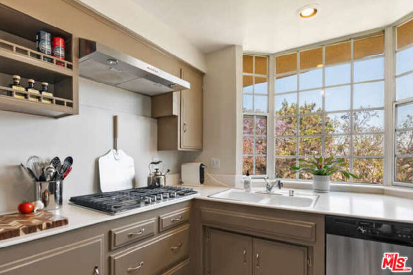 Spacious 2 Bedroom + 2 Bath + Fabulous Living Room + Tons of Natural Light + NYC Vibes. You'll love this largely updated and fabulous top-floor South-of-the-Boulevard condo - walkable to so much! The open living room/dining room makes for an amazing entertaining space - and includes additional pantry and storage closets. The primary bedroom includes TWO walk-in closets and gorgeous ensuite bathroom with jetted tub, dual sink, and two showerheads with rain shower. The outstanding chef's kitchen boasts a double oven, eat-in area, mountain views out the bay windows, and newer stainless steel appliances. The second bedroom is roomy, stylish, and includes a custom closet system. Air is central, and heat is radiant through the ceilings. Parking spots are side-by-side. Pool, hot tub, and updated gym are in rear of building. System Upgrades include: Gas Fireplace: 1 year ago. A/C compressor: 1 year ago. Electrical panel: 5 years ago. Roof: 9 years ago. EQ insurance, gas, water, and trash are included in HOA. A variety of Smart Home components include: thermostat, lighting, air vents, smoke detectors, and locks. Shopping, coffee, and great restaurants are minutes away. Welcome to splendid Sherman Oaks!