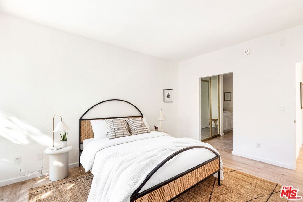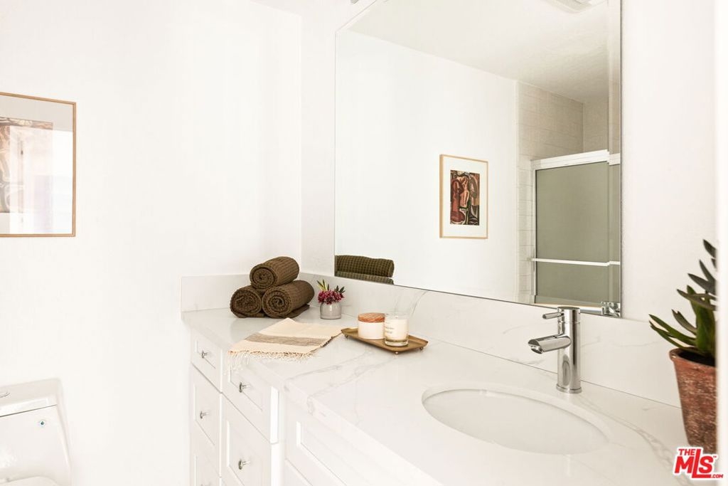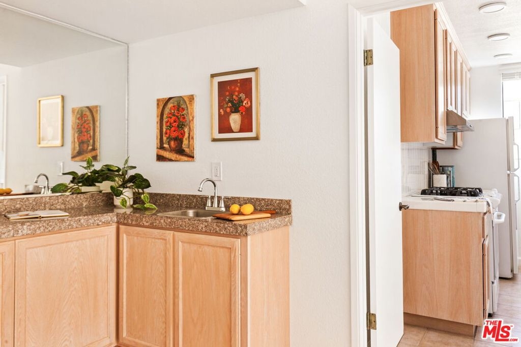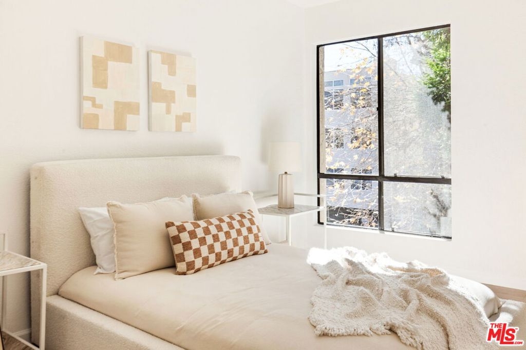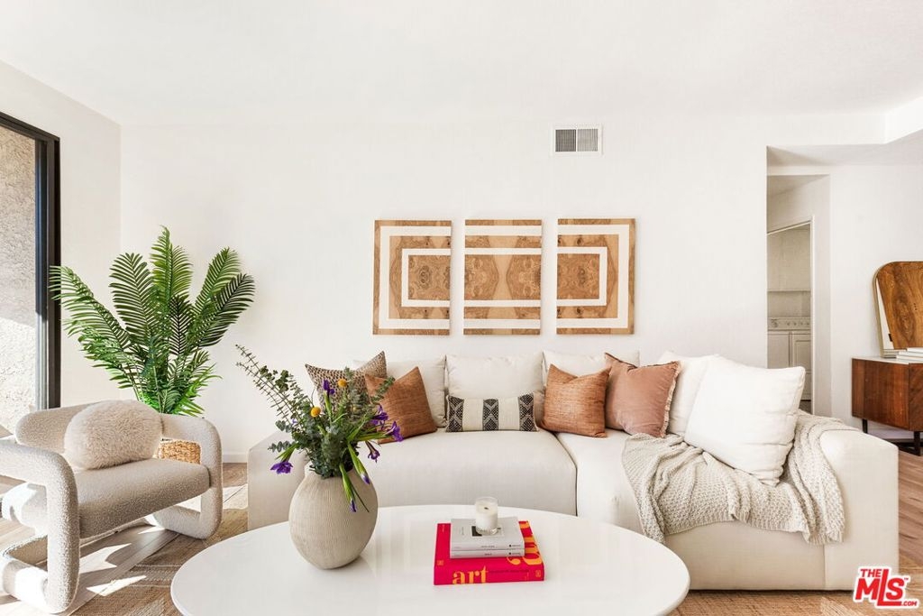 On a tree-lined street in the heart of Sherman Oaks, this light-filled top floor unit checks all of the boxes. Through tall double doors, enter into the high-ceilinged, spacious formal living room, featuring a decorative fireplace and large sliding glass doors that lead to a private balcony. From the living room, flow seamlessly into the kitchen and dining room, as well as into the den/office with a big south-facing picture window. Down the hallway, pass an ample laundry room with additional storage and find two generous bedrooms, one with an ensuite bath, with newly installed vanities. Two side-by-side parking spaces are included with the unit. Located in a coveted pocket south of Ventura Boulevard, and just a stone's throw from shops and restaurants, easily access UCLA, the Sportsman's Lodge, studios, and all the Valley has to offer. Hurry!