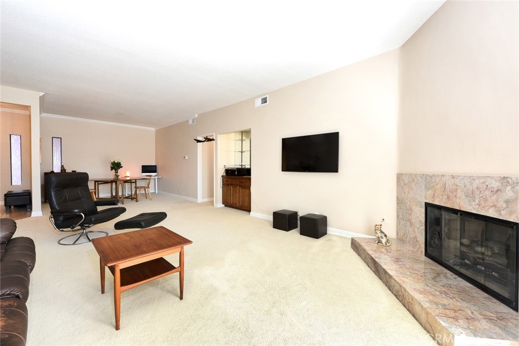 10K to DEFRAY the HOA! YES!! Seller offering $10,000 closing cost credit* to buyer with full price offer. HOA dues include: Earthquake Insurance, Cable (incl. HBO and Showtime), Internet Service and water. Bright corner unit, super close to 405 and 101 freeways, local shops, restaurants + brand-new Whole Foods, new Pavillion's and good old Gelson's. Quiet and cool, single-level-condo with tree top views as seen through Milgard Tuscany windows and sliders, newly installed in 2018. Balconies off of kitchen, LR and master bedroom. Spacious open Dining and Living Room with gas fireplace and plantation shutters. Kitchen with dining nook that opens to south-facing balcony includes an adjacent, separate laundry room allowing for side-by-side washer/dryer. Oversized master with large walk-in closet is attached to full bath. Well-run HOA includes pool, spa and exercise room to complement the living experience. Great unit, Great ambiance, Great location. *With Lender approval