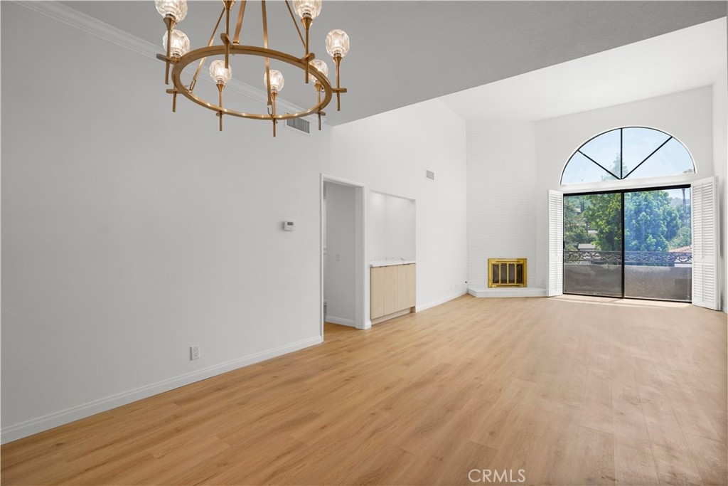 Welcome to this stunningly renovated penthouse nestled in one of the most prestigious neighborhoods in Sherman Oaks. Flooded with natural light, this luxurious residence features soaring 15-foot ceilings and expansive windows that frame sweeping views and create an airy, open ambiance. The thoughtfully designed open floor plan includes a stylish living room with a fireplace, an elegant dining area, and exquisite wide-plank flooring throughout. The chef’s gourmet kitchen is a culinary masterpiece, boasting custom European cabinetry, stainless steel appliances, and a cozy breakfast nook—perfect for both entertaining and everyday living. A separate laundry room adds to the convenience. The oversized primary suite offers a serene retreat with generous space, breathtaking views, and a refined sense of privacy. The en-suite bathroom is beautifully appointed with dual vanities, a soaking tub, and a separate shower. Residents of this secure, well-maintained building enjoy access to an array of upscale amenities including a pool, spa, sauna, fitness center, and ample guest parking. HOA dues cover water, cable, earthquake and liability insurance, grounds maintenance, landscaping, and upkeep of the pool and spa. Situated just moments from premier shopping, dining, and with easy access to the Westside, this penthouse exemplifies true pride of ownership and sophisticated urban living.