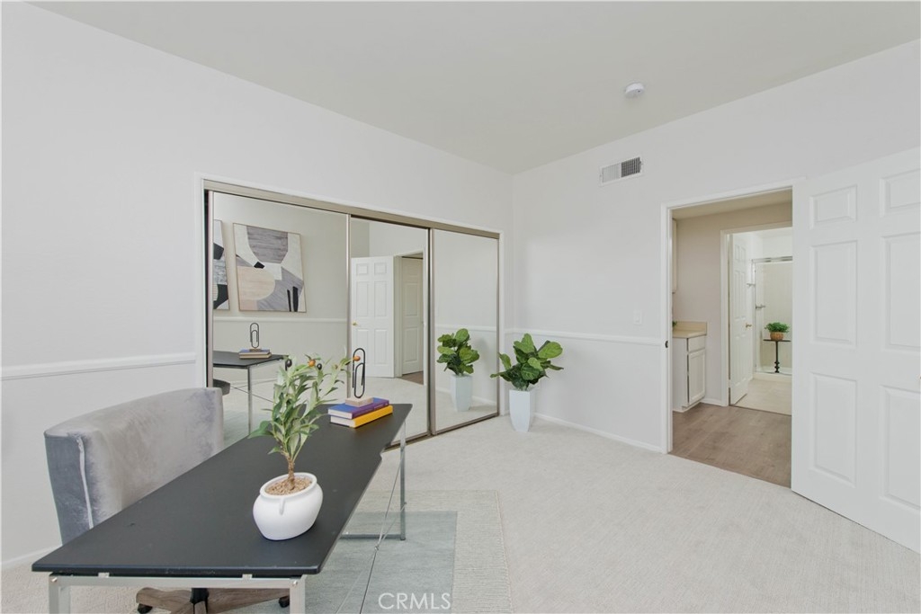 Look no further! This stunning residence in Chandler Park Village is ideally situated on a peaceful cul-de-sac street within the community’s most sought-after building. Bathed in natural light, this desirable corner unit offers beautiful views of mature trees and lush landscaping. Step inside to find spacious, open-concept living areas that include a formal dining space and an expansive living room anchored around its cozy fireplace, with direct access to a serene private balcony. The cook's kitchen features stainless steel appliances and a casual dining area — perfect for everyday living and entertaining. The well-designed layout includes two bedrooms located on opposite sides of the home, providing privacy and comfort. The expansive primary suite boasts a picturesque bay window, dressing area, enormous walk-in closet plus an additional wardrobe closet, and a spa-inspired bath with a makeup vanity and an oval soaking tub. Additional highlights include a full-size in-unit laundry including W&D, recently updated vinyl flooring, new carpet, new paint, designer updates, gated tandem parking, and private storage space. Enjoy the resort-style community amenities such as multiple pools and spas, a BBQ area, and fitness center. Located just moments from premier dining, shopping, entertainment, and major freeways — this is a rare opportunity to call Chandler Park Village home!