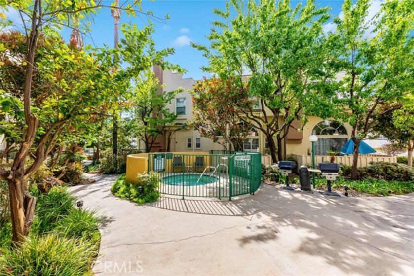Ideally situated under a lovely shade tree away from the street and pool noise, this serene 2BR+2.5BA townhouse in the gated Chandler Park Village was recently remodeled. Upon entrance you are warmly greeted by engineered dark wood and tile floors throughout, crown molding, baseboards, plantation shutters, and designer light fixtures and faucets. The kitchen was re-configured with meticulous attention to detail to create the perfect triangle. Features in the kitchen include new custom cabinets and pantry, GE Profile WiFi connected appliances, Bosch dishwasher, Samsung Showcase Refrigerator, farmhouse apron front sink, African mahogany butcher block and quartz countertops as well as reverse osmosis water filtration system, breakfast bar, and built-in desk just to name a few. Adjacent to the kitchen is the dining room, which overlooks the living room. The living room includes a fireplace, two-story ceilings, and large arched window. Excellent flow. Good natural light throughout, including skylight over the upstairs hallway. Primary bedroom has vaulted ceilings, two closets with Elfa Custom closet system, and en-suite bath appointed with marble counters. Second bedroom includes an updated en-suite bath and brand new closet doors. A small terrace off the kitchen and dining room, pleasant shaded garden patio in front, and a rarely-used spa is just a few steps away. Enter directly from a freshly painted private two car garage with washer & dryer, tankless water heater, and recently replaced quiet LiftMaster garage door opener. Lennox HVAC system was replaced in 2018 and includes Nest thermostat! This ready to move in townhouse is a true gem!