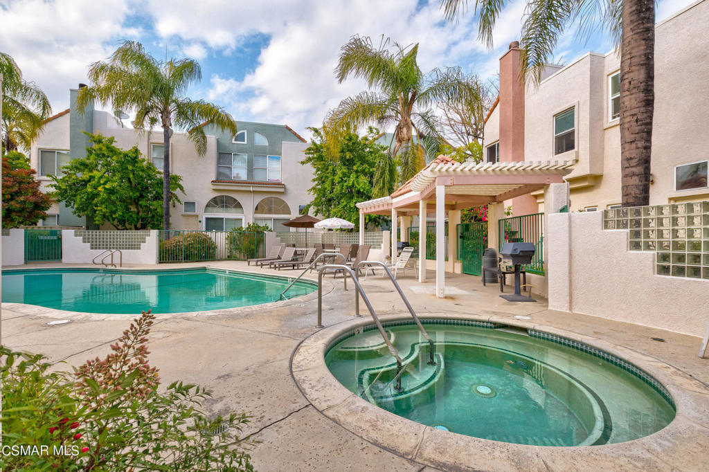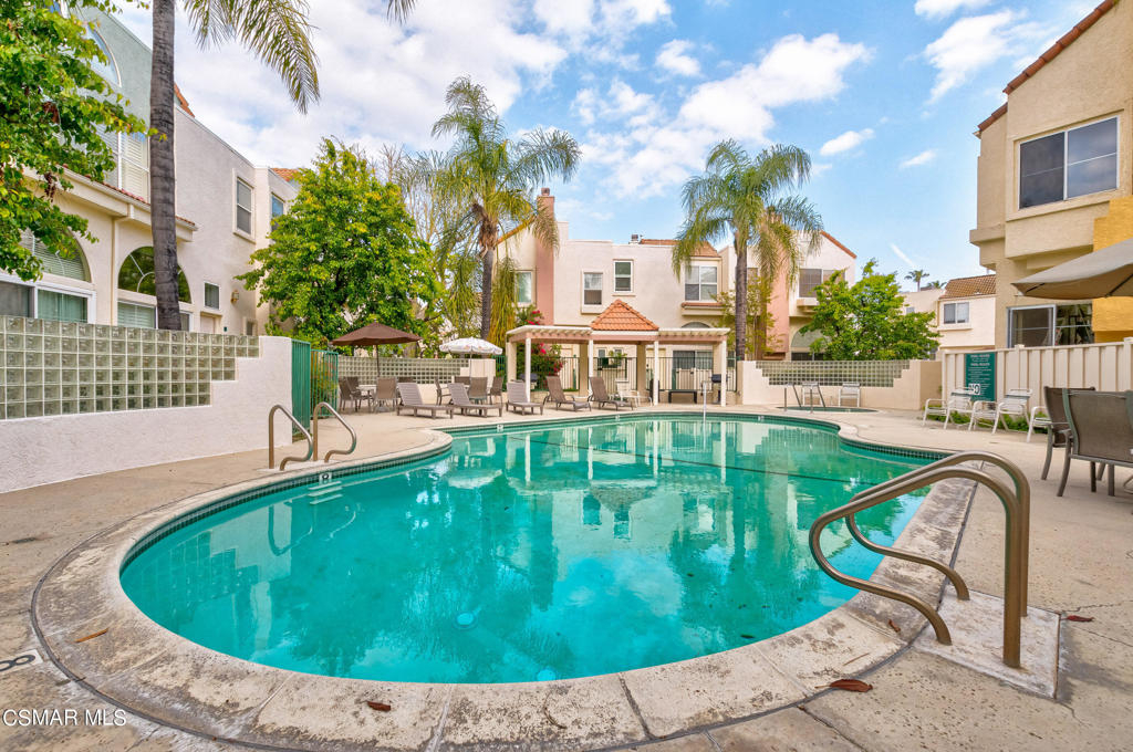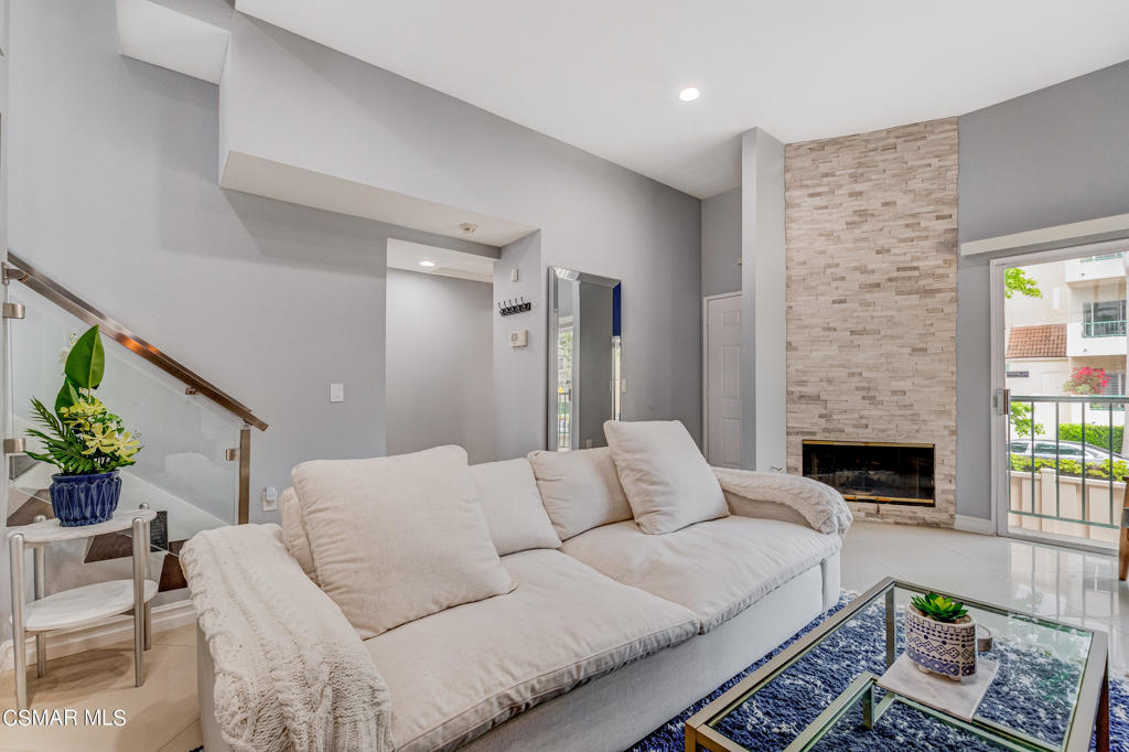 Beautiful tri-level condo in Sherman Oaks! This wonderfully maintained 3 bed, 2.5 bath end unit is one you don't want to miss! As soon you enter, you will feel right at home. A Spacious and comfortable living room is the perfect place to entertain with friends and family. With tons of natural light, high ceilings and a beautiful stacked stone fireplace, this room is perfect for so many options. The mid level up boasts the kitchen with updated countertops and appliances, along with the dining room and adjacent outdoor terrace. The top level has an abundance of natural light from the hallway skylight, beautiful vaulted ceilings in the main bedroom and two en-suite bathrooms. This privately gated community offers a gym, two pools, and security car patrols. This wonderful and private unit in very conveniently located close to shopping and restaurants. Don't miss out!