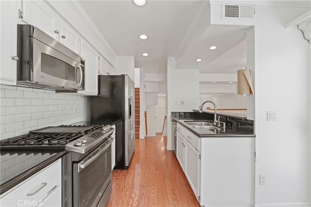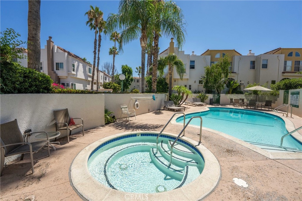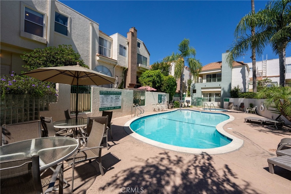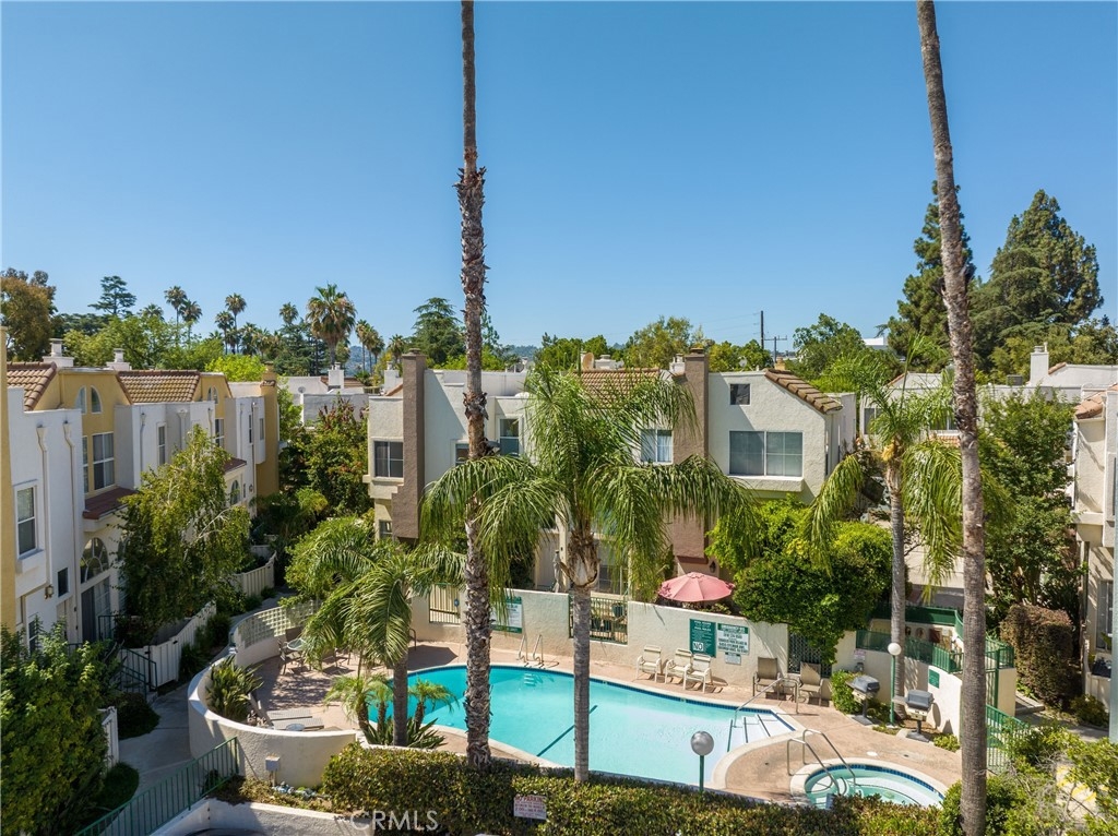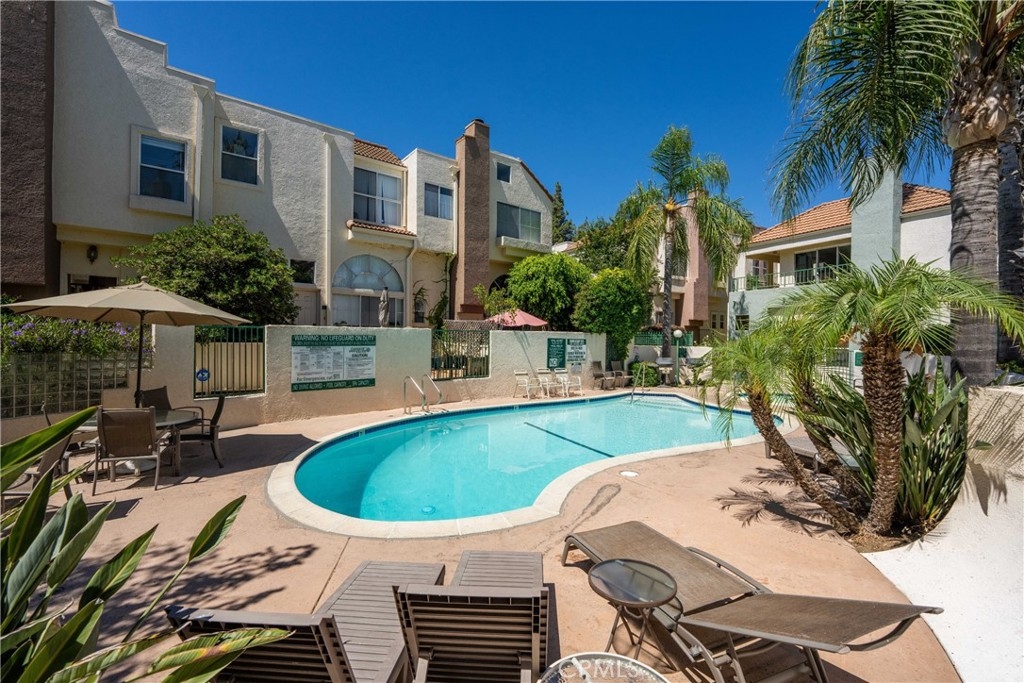 Welcome to this incredible townhome located in the highly sought after gated community of Chandler Park Village in Sherman Oaks Conveniently positioned right next to the pool. As you enter, you’ll be greeted by an inviting and open floor plan that is both spacious and functional. The living room boasts vaulted ceilings with a fireplace and recessed lighting. The kitchen is complete with stainless steel appliances, granite countertops, and ample cabinetry for all of your storage needs. The kitchen and dining overlook the living room and both have access to a private balcony. This 3 bed, 3 bath home features 3 beds and 2 full baths upstairs with a guest bath on the first level. The Master is spacious with vaulted ceilings, recessed lighting and windows overlooking the pool. Two guest bedrooms share a jack and Jill bathroom. The attached garage is on the lowest level and includes the in unit laundry. This privately gated community offers a gym, multiple pools, and security patrol. This beautiful end unit is conveniently located in a great position in the community and near shopping and restaurants as well!
