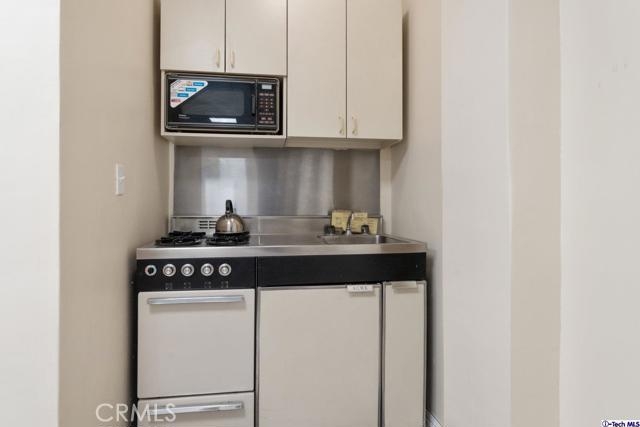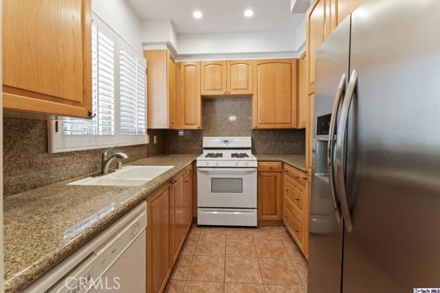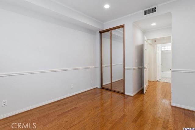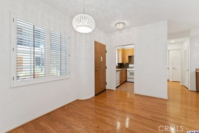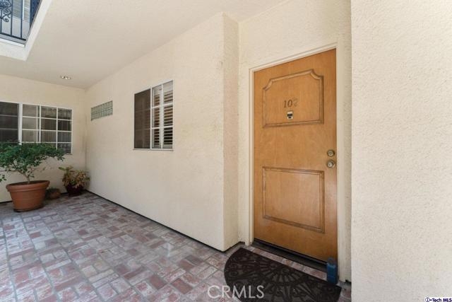 Nestled into a beautiful brick-face building in the coveted city of Sherman Oaks is this 1,072-sqft condo for sale! With a French Quarters inspired courtyard at the heart of the building, venture off to Unit 102 and enjoy the splendors of this perfectly luminous home offering oak hardwood flooring installed throughout. The spacious living room with attached dining room is highlighted by recessed LED lighting plus glittering light fixtures and includes an elegant fireplace frame by a floor-to-ceiling mirror feature wall, a dry bar with a granite countertop, and pristine window shutters throughout. Honey taupe granite countertops with matching backsplash adorns the well-crafted wood cabinetry of this remodeled kitchen equipped with built-in appliances and provides plenty of useful counter space. Down the main hallway is a convenient closet laundry space, a main bathroom with a shower/tub combination, and a sizable bedroom styled with wainscoting and complete with a built-in closet fitted with mirrored sliding doors. The large primary bedroom includes a private bathroom and a large walk-in closet. As part of a secured building, residents are welcome to take advantage of the community spa, meeting/recreation room, and gated parking area. Down the street from the lively shops, restaurants, markets, and establishments of the bustling Ventura Blvd, plus nearby various shopping centers, hiking trails, parks, and freeway access! A great find!