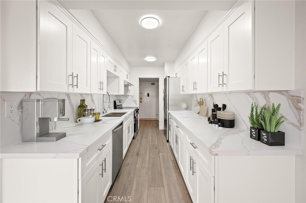 Sleek, Turn-Key Condo in Prime Sherman Oaks—Just Unpack and Start Living! Step into this corner unit home and feel the difference that a top-to-bottom renovation makes. Every surface of this two-bed, two-bath residence has been thoughtfully updated—from brand-new wide-plank hardwood floors and designer lighting to quartz counters and soft-close cabinetry—so you can skip the remodel headaches and move right in. An open-concept great room is flooded with sunlight and flows seamlessly to a private balcony off the living area, perfect for morning coffee or evening cocktails under the treetops. The show-stopping remodeled kitchen anchors the space with brand-new stainless appliances, a breakfast bar, and ample storage, while a discreet closet hides your in-unit stackable washer and dryer—true everyday luxury. Your oversized primary suite feels like a boutique-hotel retreat, boasting a custom walk-in closet and a spa-caliber bath with a frameless glass shower and dual vanities so there’s never a wait on busy mornings. A generous second bedroom and stylish hallway bath make the layout ideal for guests, a home office, or a nursery. Bonus features is a den that can turn to an office or position extra bedroom. Beyond your front door, enjoy resort convenience with a sparkling community pool and bubbling spa, secure lobby entry, dedicated parking, and well-kept grounds. The building was retrofitted and remodeled recently. Venture a few blocks south and you’re on Ventura Boulevard—minutes to Trader Joe’s, Whole Foods, top restaurants, and easy 101/405 freeway access for a stress-free commute. If you’ve been hunting for a Sherman Oaks home that pairs modern finishes with unbeatable location and amenities, this unit delivers on every front. Tour today, fall in love, and start living the turnkey lifestyle you deserve!