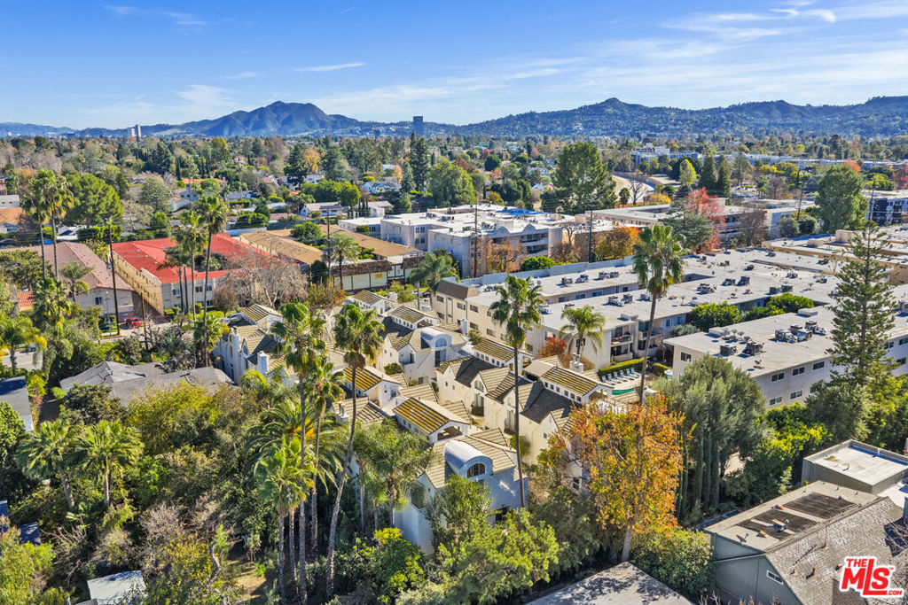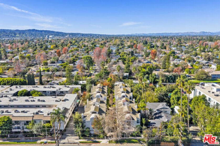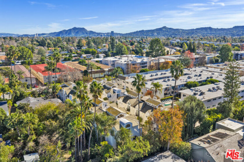Welcome to the beautiful and stylish Chelsea Court in SHERMAN OAKS! A majestic iron gate with intercom welcomes you to an inviting well-maintained tranquil courtyard with stone-paved walkways, lush tropical landscaping and regal water fountains with only 16 units in this stunning architectural complex. This LARGE (1498 Sq Ft) 2-Bed, 2-bath END UNIT is perfectly situated in the middle of the community. This executive townhome is light and bright with 3 balconies, large windows with new vertical blinds, recessed LED lighting, NEST thermostat and new flooring throughout. As you enter, you have a den/office (possible 3rd bedroom) and powder room with shower leading to a lavish living room with a cozy gas fireplace. The beautifully remodeled kitchen with classic subway tiles and clean quartz countertops provides plenty of counter space and an abundance of cabinets with newer LG stainless steel appliances. Enjoy dining/entertaining on the outside patio. UPSTAIRS are two en-suite updated bedrooms with dramatic vaulted ceilings, large custom walk-in closets and their own private balconies. The spacious primary bedroom suite has its own upgraded private bath with double vanity, separate shower & tub. The laundry area is conveniently located in the upstairs hallway and has a newer full-size LG washer and dryer. Each unit has direct access to the secured, gated subterranean garage with 2 reserved side-by-side parking spaces (with ample guest spots) that makes parking a breeze. Plus, this townhouse is complete with a sizable in-unit STORAGE space. This desirable location is situated in the heart of Sherman Oaks with easy access to the 101 FWY, nearby to: Whole Foods, Ralphs, Sportsmen's Lodge, Equinox, Erewhon, upscale restaurants, shops and quality schools. BONUS: HOA includes water and earthquake insurance!