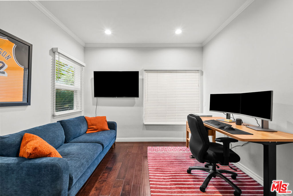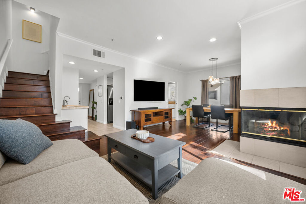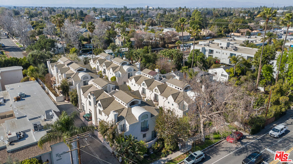 Welcome to the charming and stylish Chelsea Court in prime Sherman Oaks! A gorgeous architectural complex of only 16 units, in a private courtyard adorned with colorful landscaping, water fountains, and stone-paved walkways. This meticulously maintained home offers an inviting open floor plan perfect for modern living, with a gated subterranean parking garage giving you direct access into a private END UNIT! This townhome features a bright living area with a large patio, perfect for entertaining. Upstairs you will find a spacious primary bedroom with a luxurious en-suite bathroom, including a shower and standalone bathtub, cathedral ceiling, custom walk-in closet, beautiful plantation shutters, and two balconies. The second bedroom boasts a vaulted ceiling, custom walk-in closet, balcony, and a full en-suite bathroom. Downstairs, you have a possible 3rd Bedroom/Office with an adjacent full bathroom, wet bar, custom built in shelving, living room and dining room. The gourmet kitchen features granite countertops, stainless steel appliances, and plentiful storage. This home has two parking spaces in a gated garage with a private storage unit for extra space. Newer Upgrades include: HVAC, nest thermostat, water heater, recessed lighting, washer and dryer in unit, roof (all units), and much more! Close proximity to Whole Foods, Equinox, Sportsmen's Lodge, Ralphs, the Valley's best restaurants, and freeway access. Don't miss out on this stunning turn key home!