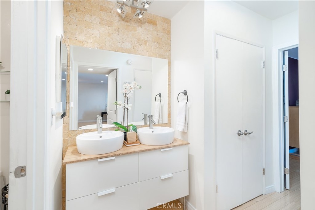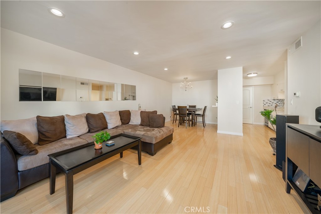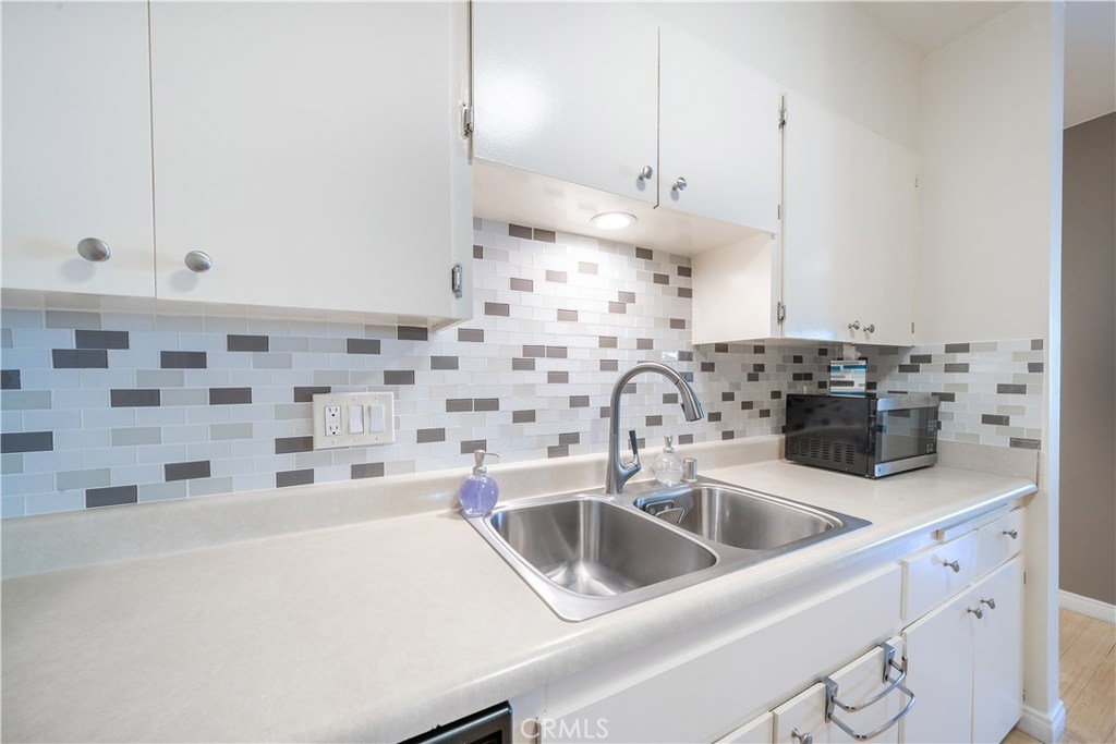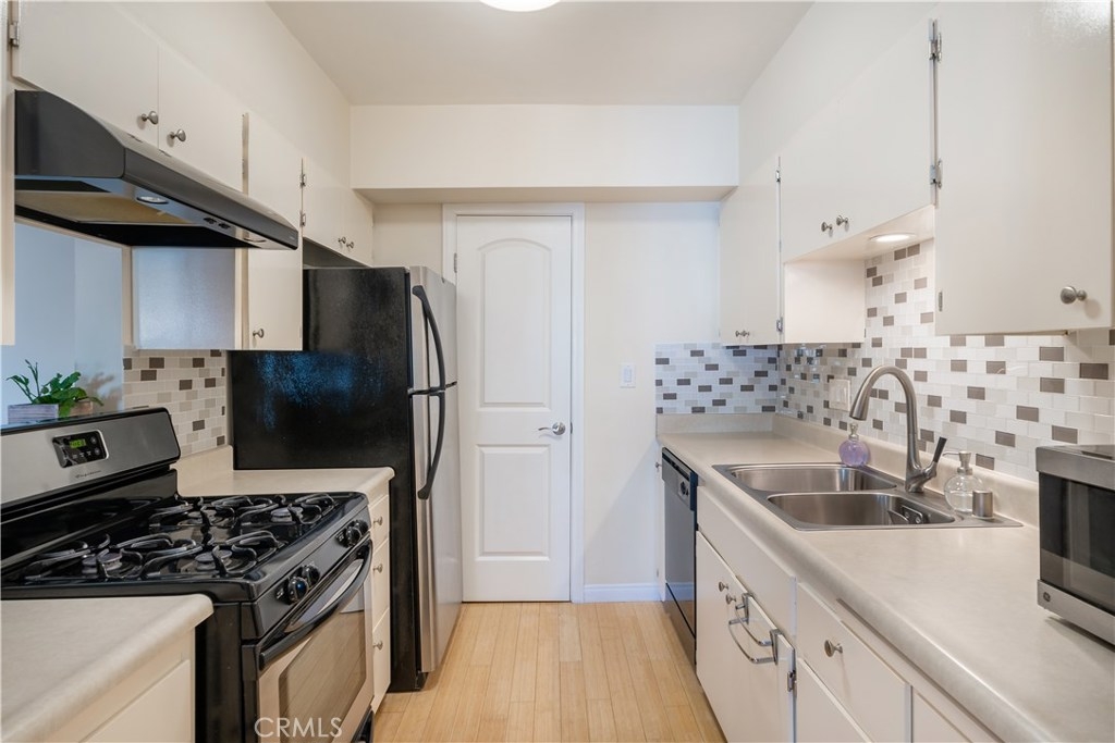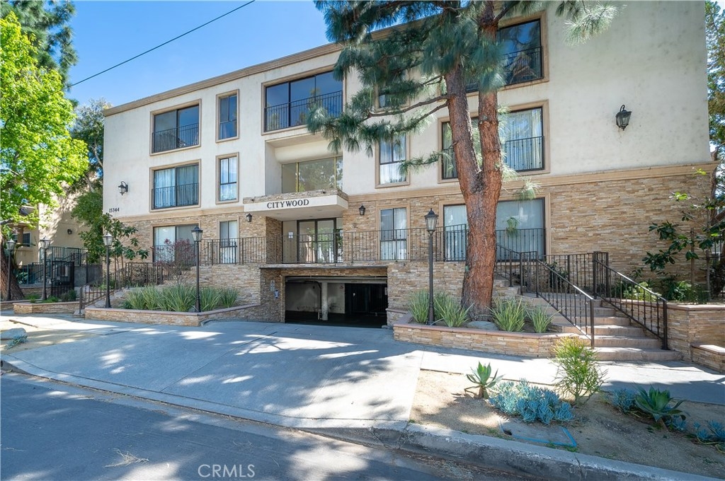 SPACIOUS 1 bedroom/1 bathroom condominium with a FABULOUS floor plan. This stylish UPDATED unit is in gated Citywood Complex in the heart of Sherman Oaks. Near MOVE IN CONDITION! The entertainers style living room has hardwood style flooring and has room for a modular couch or even large furniture plus many other options. Also includes flat ceilings with recessed lights, central air/heat and newer thermostat. The wood framed French Doors in living room lead to the sellers green thumb balcony that has neighborhood, trees and partial mountain VIEWS. The large BRIGHT kitchen features stainless steel refrigerator and appliances, glass backsplash, dishwasher plus lots of cabinets and very useful walk in pantry. The full sized dining room and breakfast bar offer a choice where to eat. The beautiful bathroom has dual sinks with TRAVERTINE BACK-splash on vanity, and a gorgeous MARBLE enclosed shower/bath tub. OVERSIZED closet in entryway might be storage, professional business office or etc. NO STAIRS in unit. 2 Elevators from garage. 1 car assigned gated parking. Cul de sac street. Unit is located on 1st floor but floor is elevated and similar to many other 2nd level condos. HOA Includes sparkling pool, updated front/rear facades, exterior building painted, earthquake insurance and WATER. Near 405/101 freeways and Westside, yet very QUIET. EASY ACCESS. Washer/Dryer on each floor. Private w/d with HOA approval. Call agent for appointment.