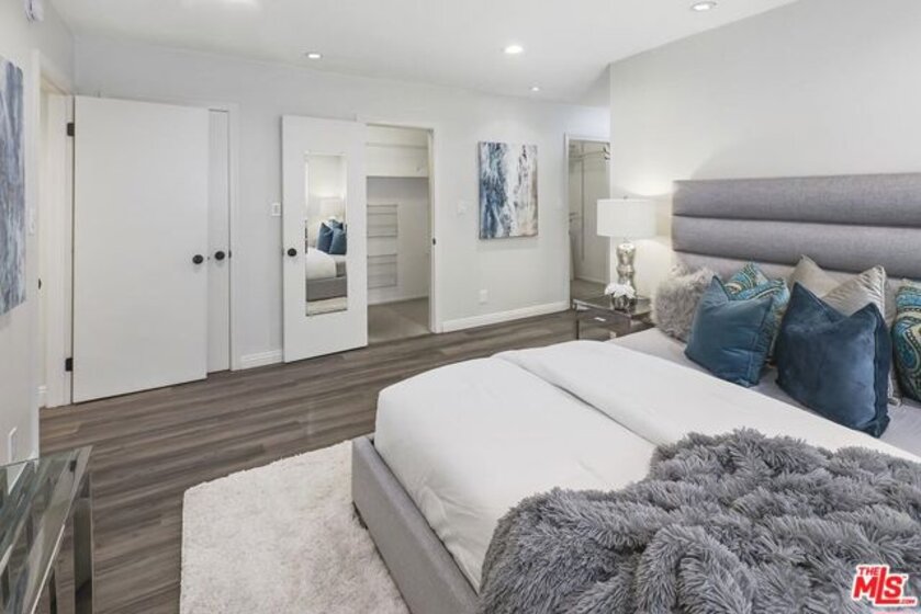 Be charmed by this stylish single story unit just a few blocks North of Ventura Blvd. in prime Sherman Oaks. A huge, open-concept living and dining area is perfect for entertaining. The kitchen boasts a large peninsula with countertop seating, farmhouse sink, stainless steel appliances, and designer finishes throughout. The primary bedroom has three walk-in closets, a built-in vanity, and an en-suite bathroom with a separate bathtub and shower. There is a nicely sized secondary bedroom and additional bathroom with shower. Other features include a brand new heating and cooling system, dual pane windows, laminate flooring and recessed lighting. There is an all-in-one washer and dryer in-unit, two side-by-side parking spaces, and a community pool. An elevator from the garage makes this unit easily accessible. With close proximity to shops, restaurants, and parks, this unit has it all.