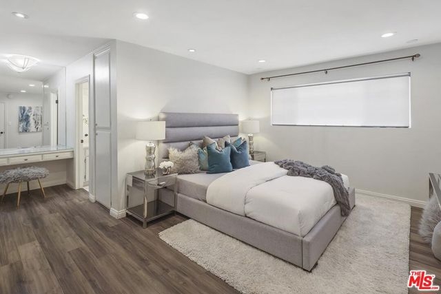 Be charmed by this stylish single story unit just a few blocks North of Ventura Blvd. in prime Sherman Oaks. A huge, open-concept living and dining area is perfect for entertaining. The kitchen boasts a large peninsula with countertop seating, farmhouse sink, stainless steel appliances, and designer finishes throughout. The primary bedroom has three walk-in closets, a built-in vanity, and an en-suite bathroom with a separate bathtub and shower. There is a nicely sized secondary bedroom and additional bathroom with shower. Other features include a brand new heating and cooling system, dual pane windows, laminate flooring and recessed lighting. There is an all-in-one washer and dryer in-unit, two side-by-side parking spaces, and a community pool. An elevator from the garage makes this unit easily accessible. With close proximity to shops, restaurants, and parks, this unit has it all.