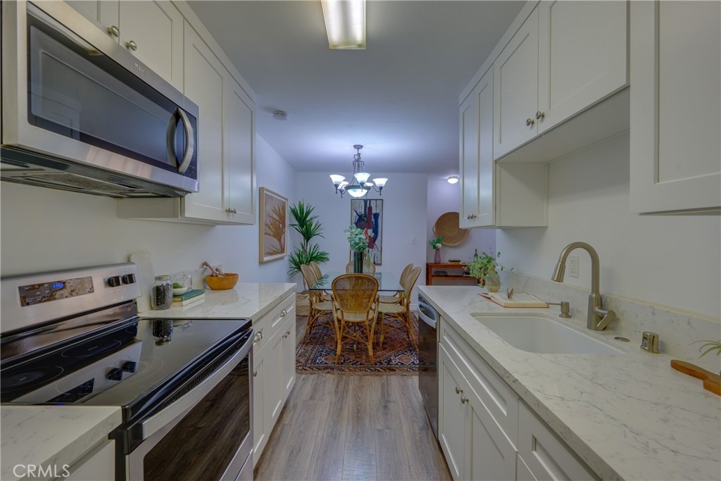 Welcome to this spacious and upgraded 2 bed and 2 bath first floor unit in the heart of Sherman Oaks. The great open floor plan makes it a perfect space for entertaining guests. Large primary suite features wall-to-wall closets and large en-suite bathroom. Unit is located close to the pool. Two secured underground side by side parking spots with elevator for easy access to the unit. Located minutes from Ventura Boulevard shops and restaurants and conveniently located near major highways.