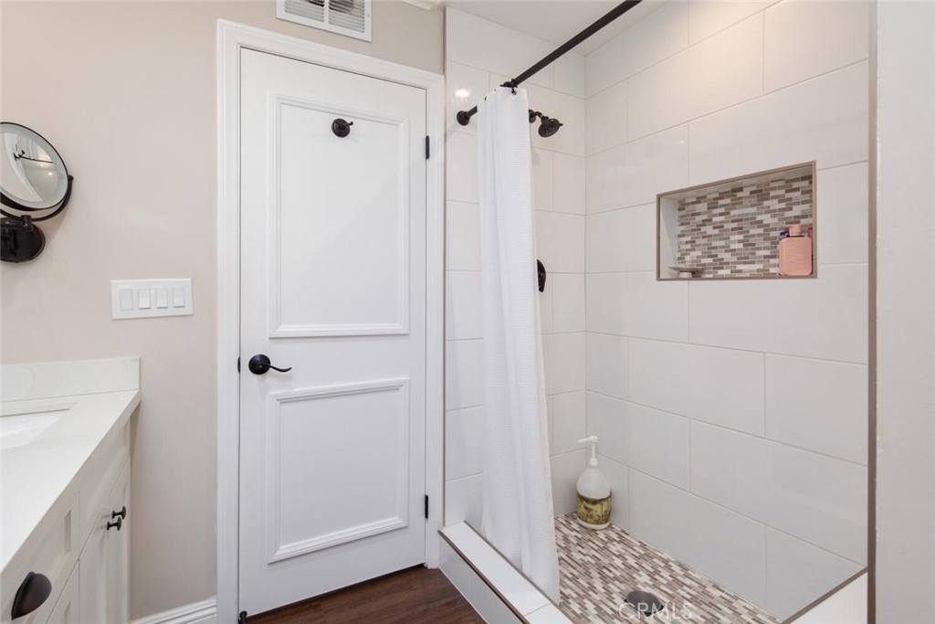 This beautiful recently remodeled condo is situated in the heart of Sherman Oaks on a quiet tree lined street. The spacious living room has a fireplace, lovely built-ins and it opens to a large private balcony. The gourmet kitchen is a chef’s delight with quartz counters and stainless steel appliances. The large bedroom has a walk-in closet. Enjoy the remodeled bathroom that boasts a dual vanity. Your own private washer & dryer are located in laundry room next door. Assigned parking in secure gated garage. This ideal location is just moments to the some of the Boulevard’s finest restaurants and shops with easy access to West side, and just minutes to Hollywood freeway and all major Studios. Your turnkey gem awaits!